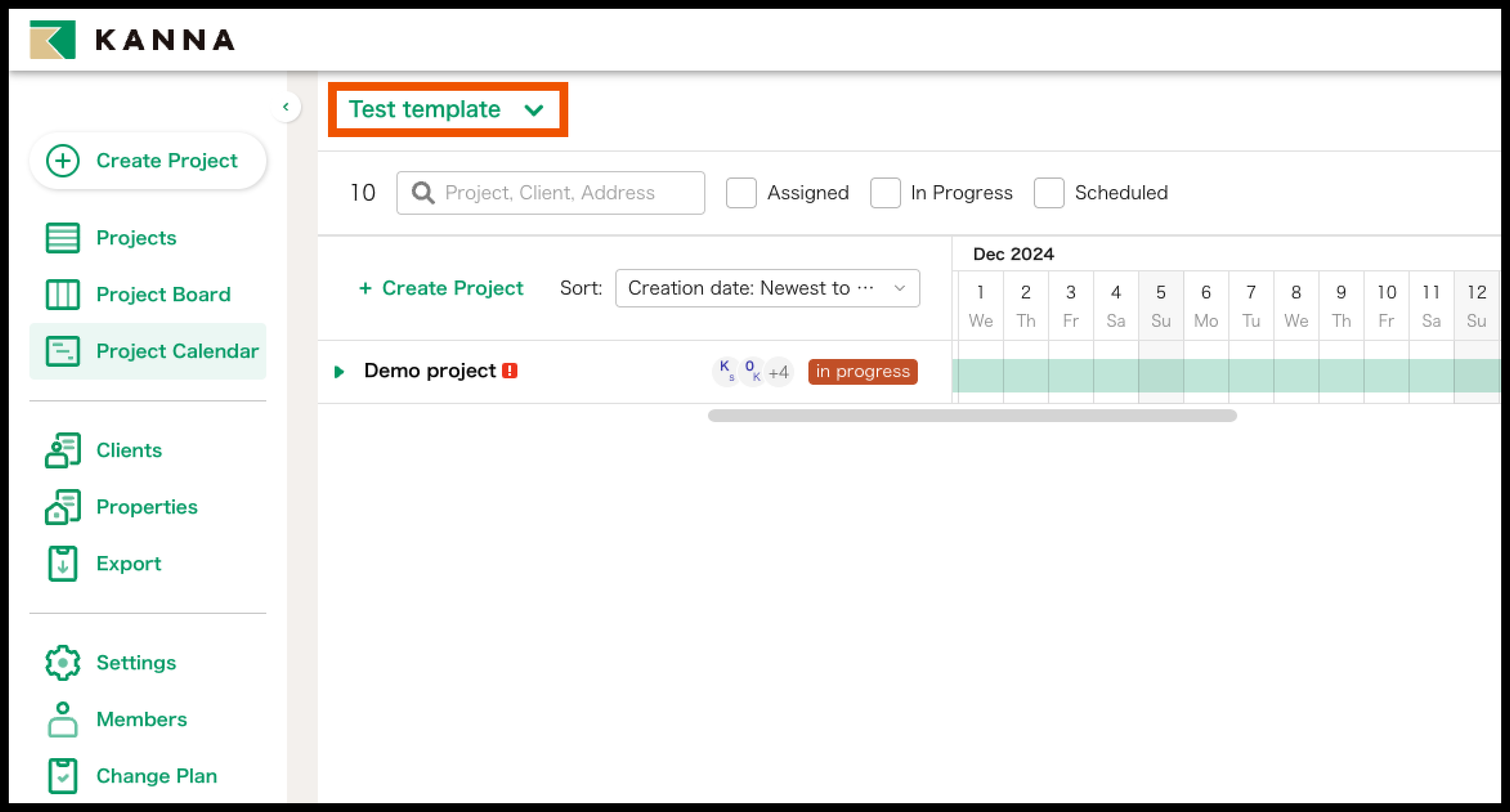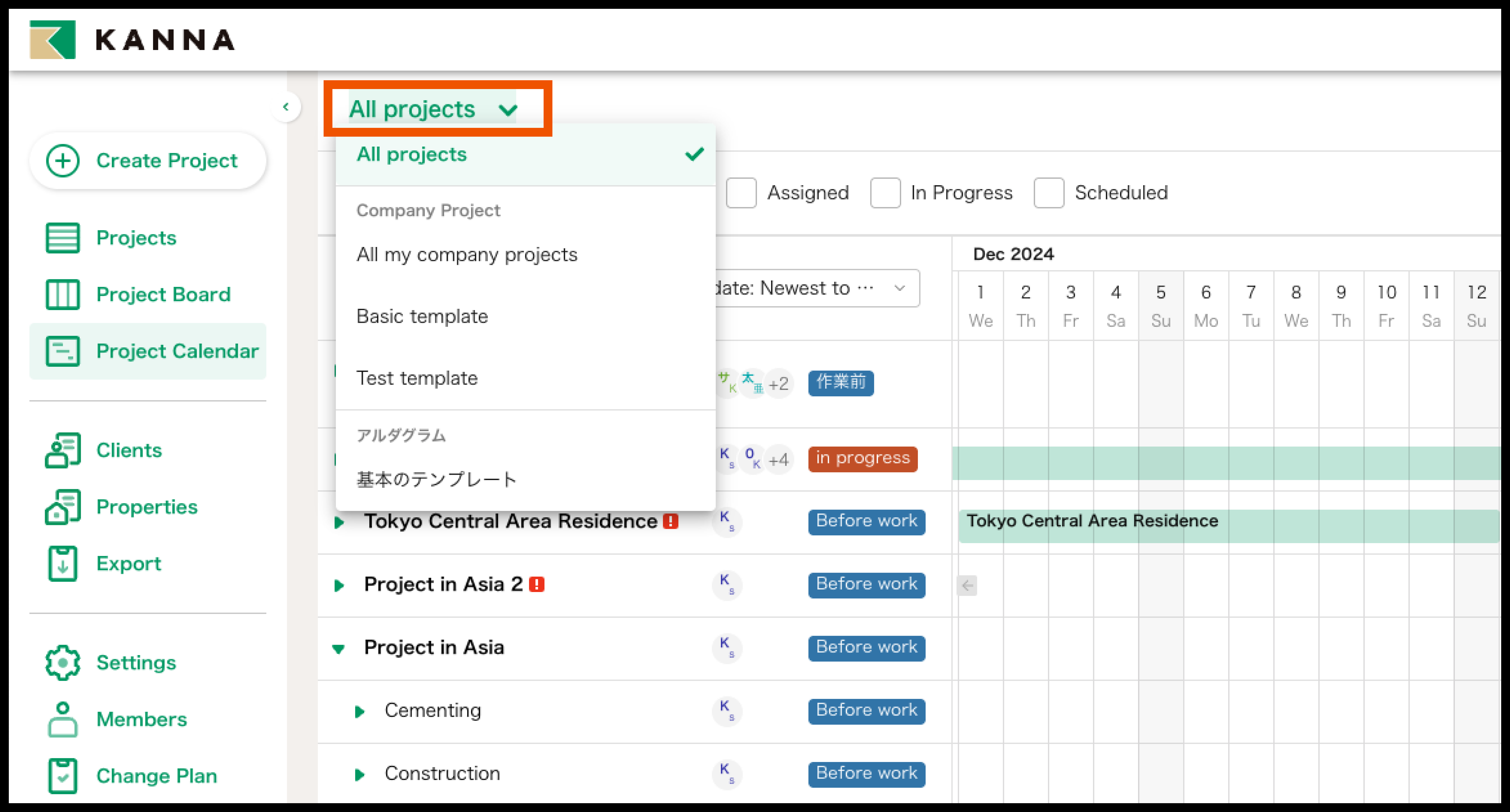 You can also search for and filter projects on the project calendar using project templates or keywords.