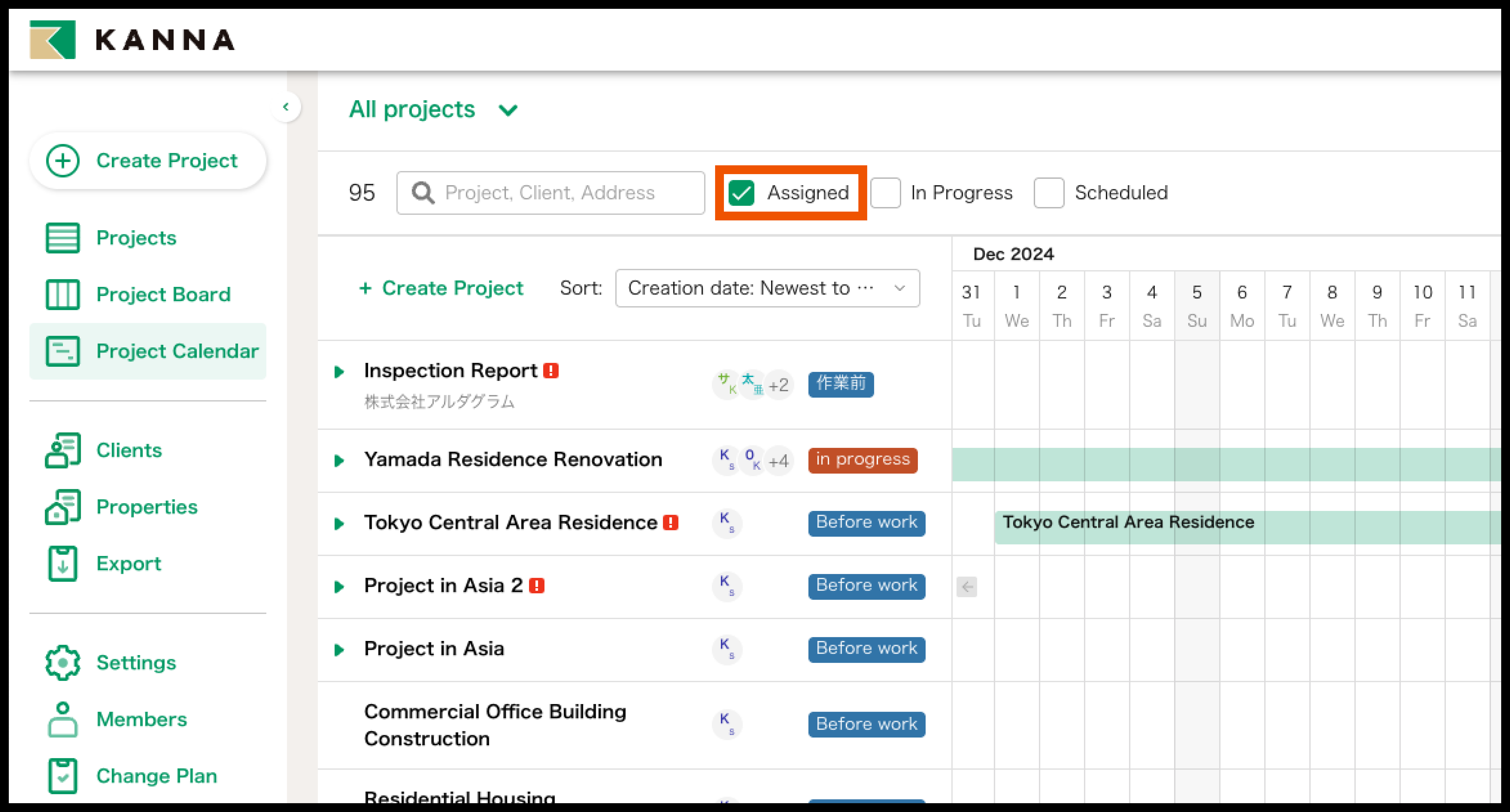 Selecting【Assigned】displays only Projects where you are the assigned Projects manager.