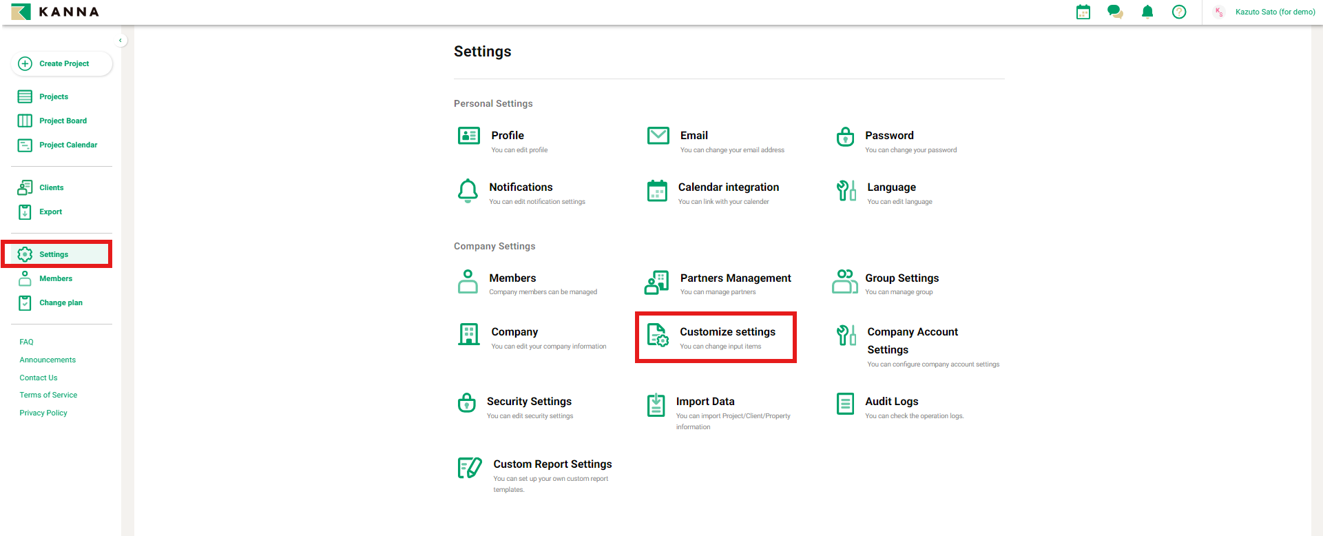 1. Click ⚙️ [Settings] and then select [Customize Settings].