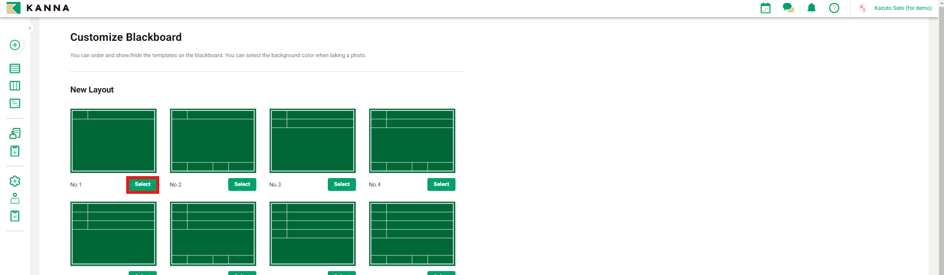 4. Click [Select] on the layout you want to use
