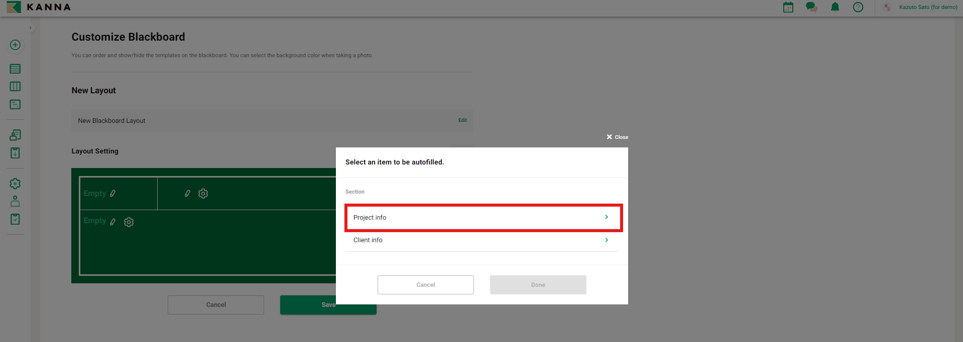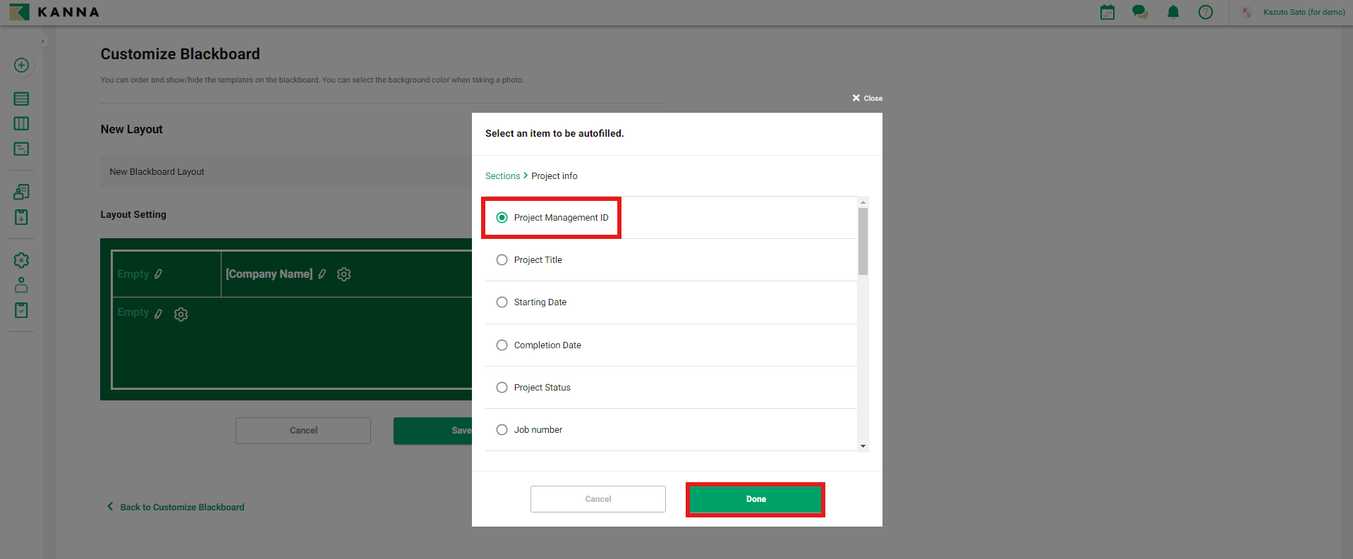 Additionally, you can link project overview details (such as the project name or address) to the fields displayed on the blackboard, ensuring that the necessary information is reflected on the blackboard when taking photos.