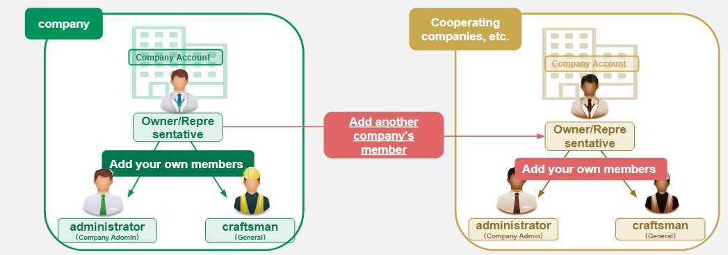 In KANNA, the owner ( the interim owner) first creates a company account and an individual account. After that, if you want your company's employees to create KANNA accounts, the owner must add them as members of your company, or if you want to invite a partner company, you can add the company as an external company member. If you would like to have an account created within a partner company, you will be invited to create an account as an internal company member within the partner company.