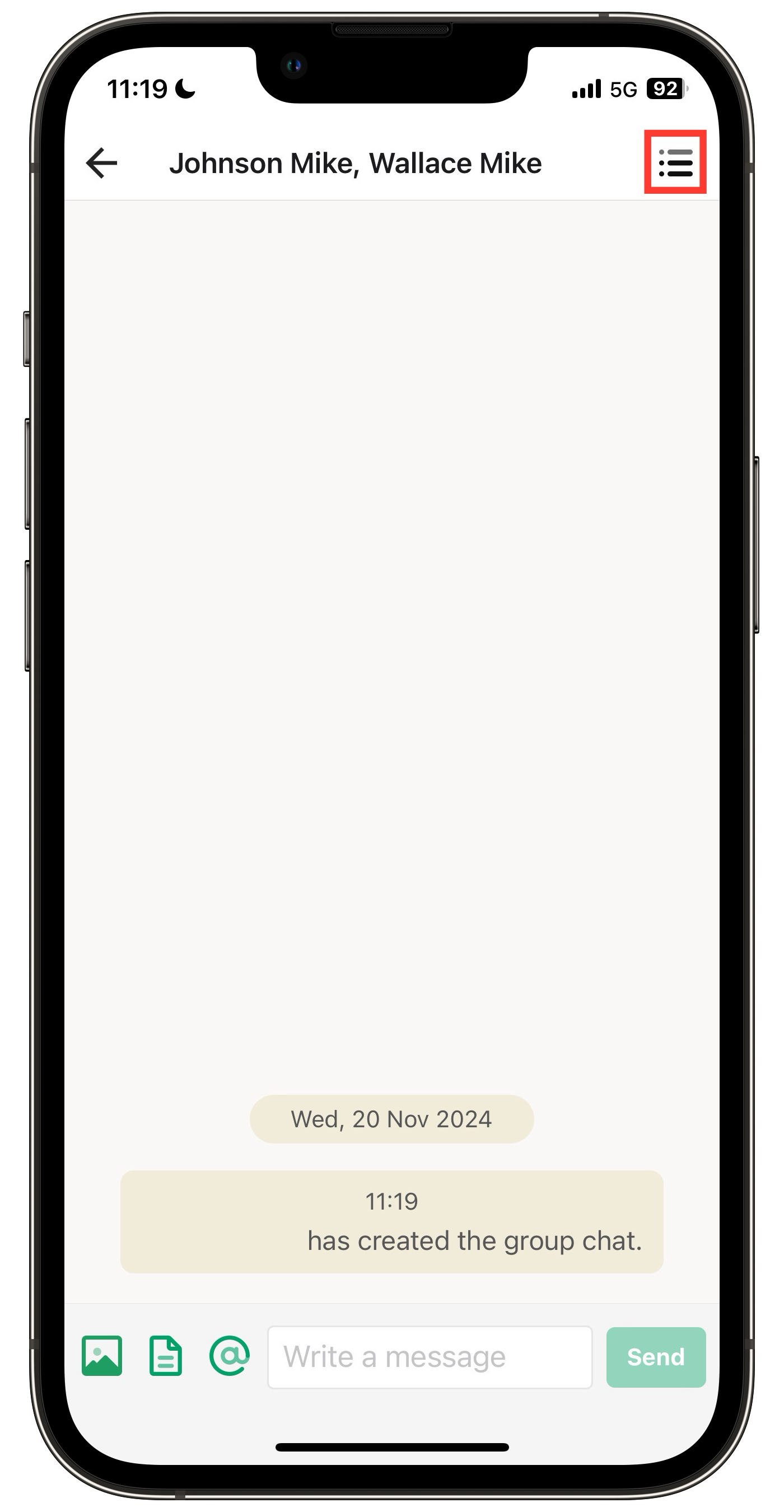 If you want to configure group settings or edit members, tap the icon in the top-right corner of the screen.