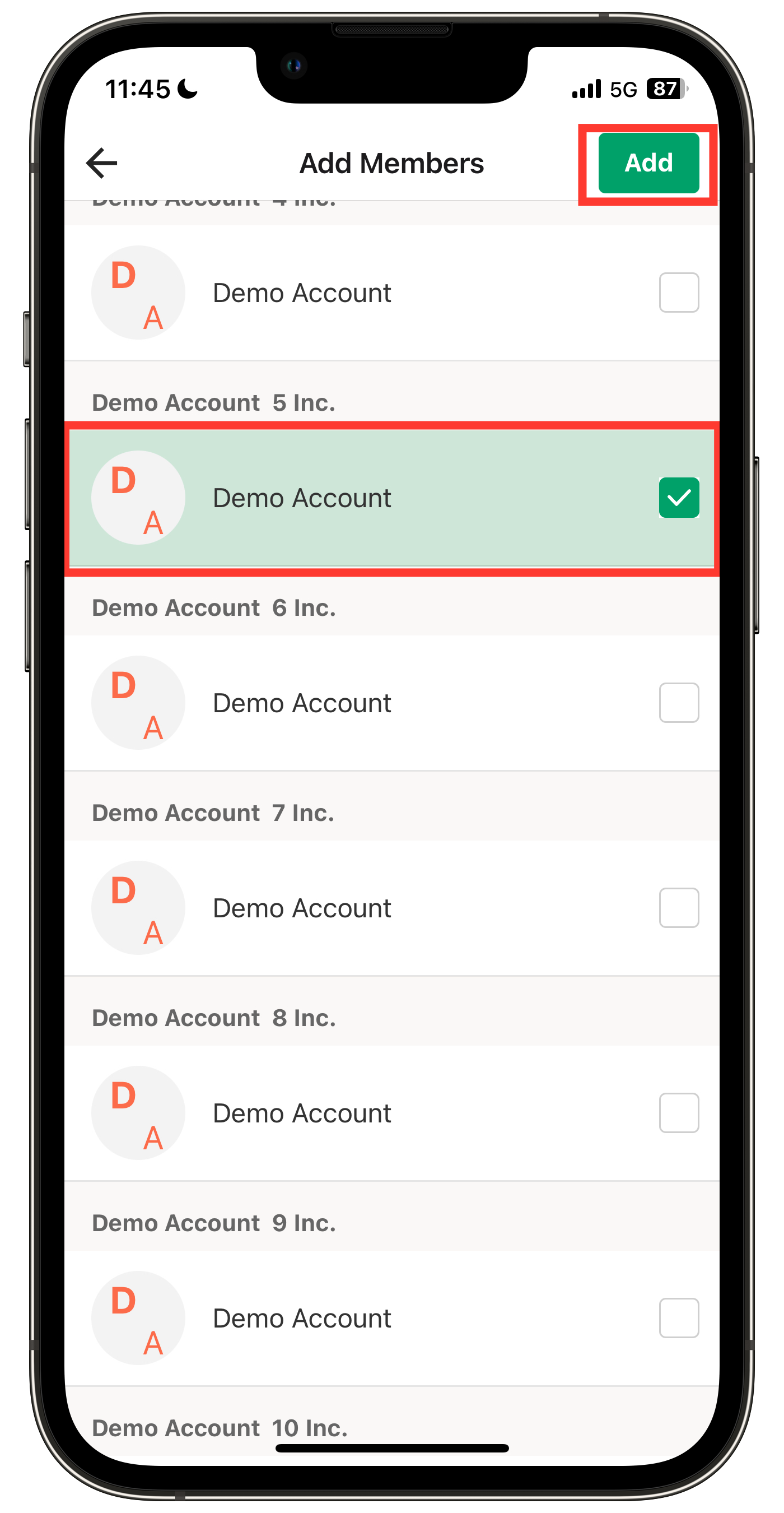 2. Select the members you wish to add and tap "Create"