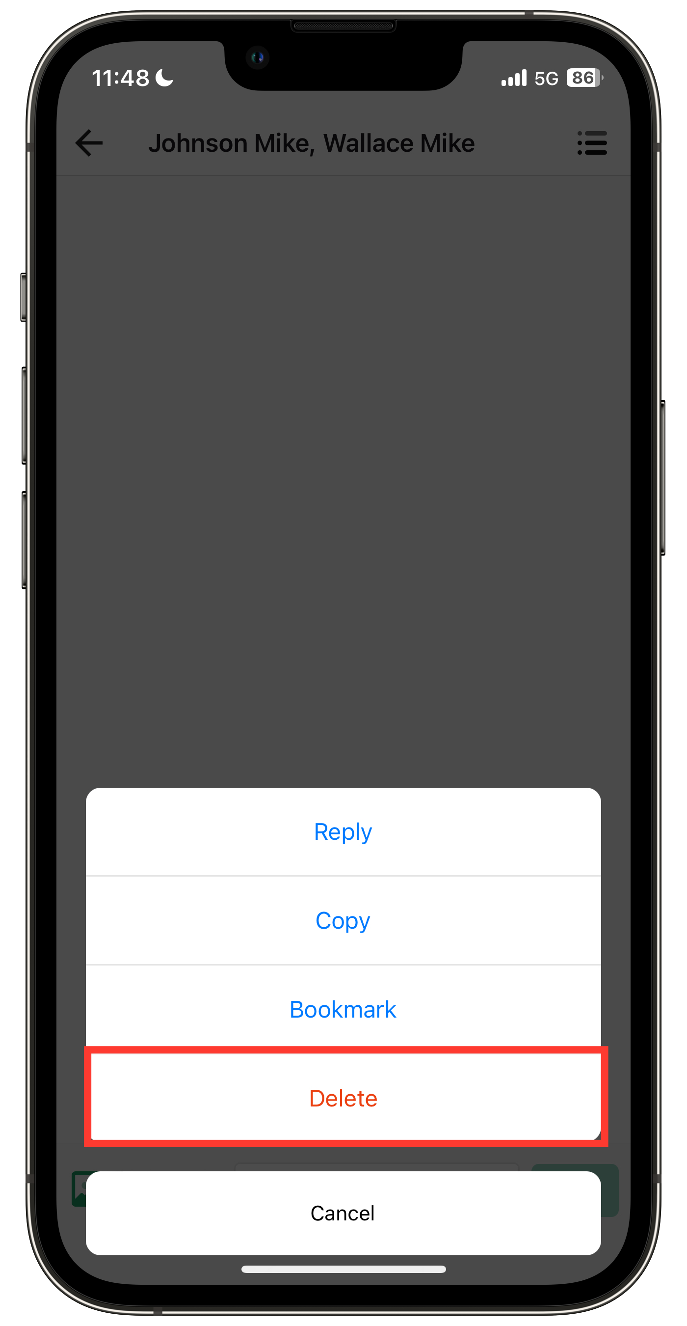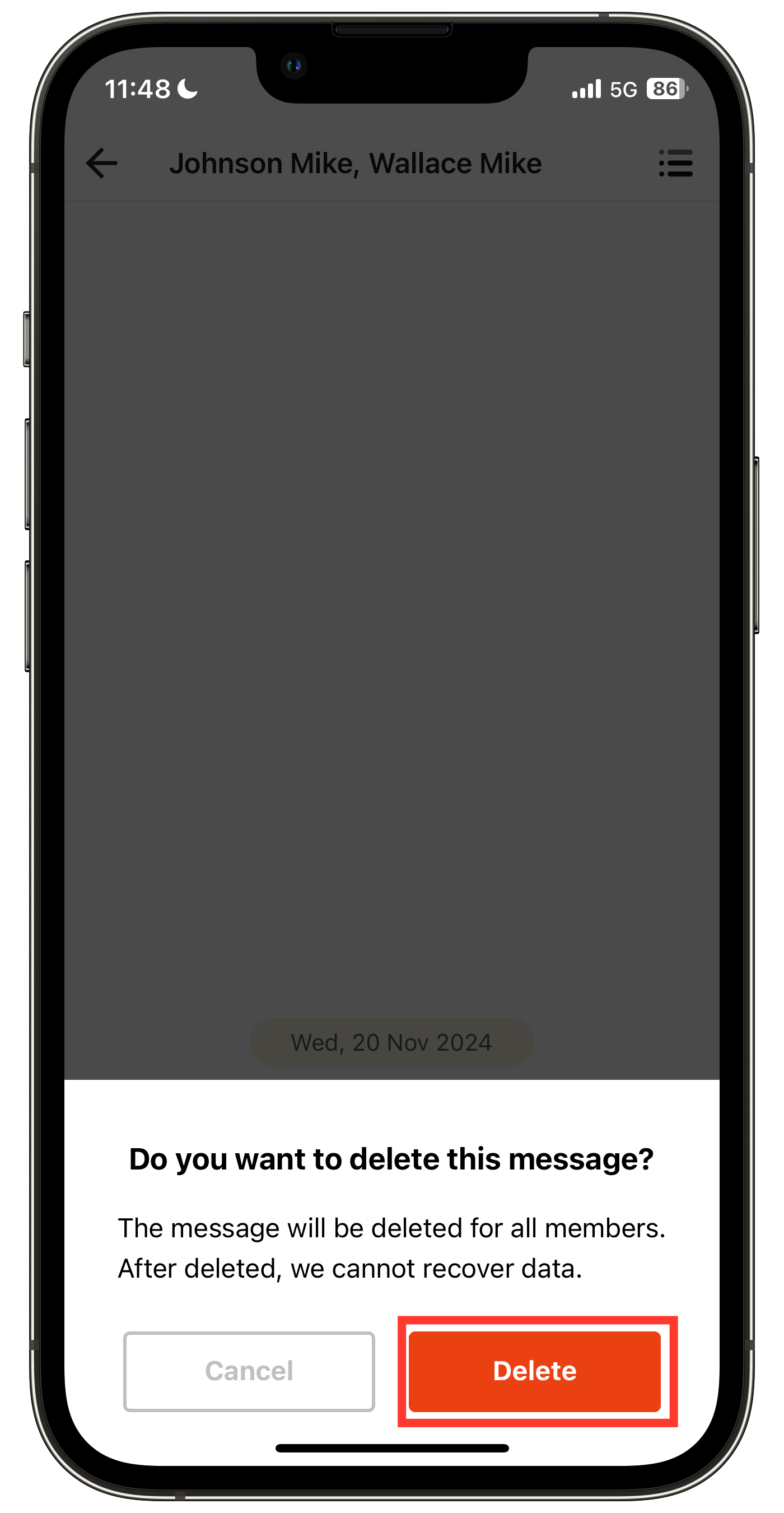 Note: Only the group creator can delete messages.