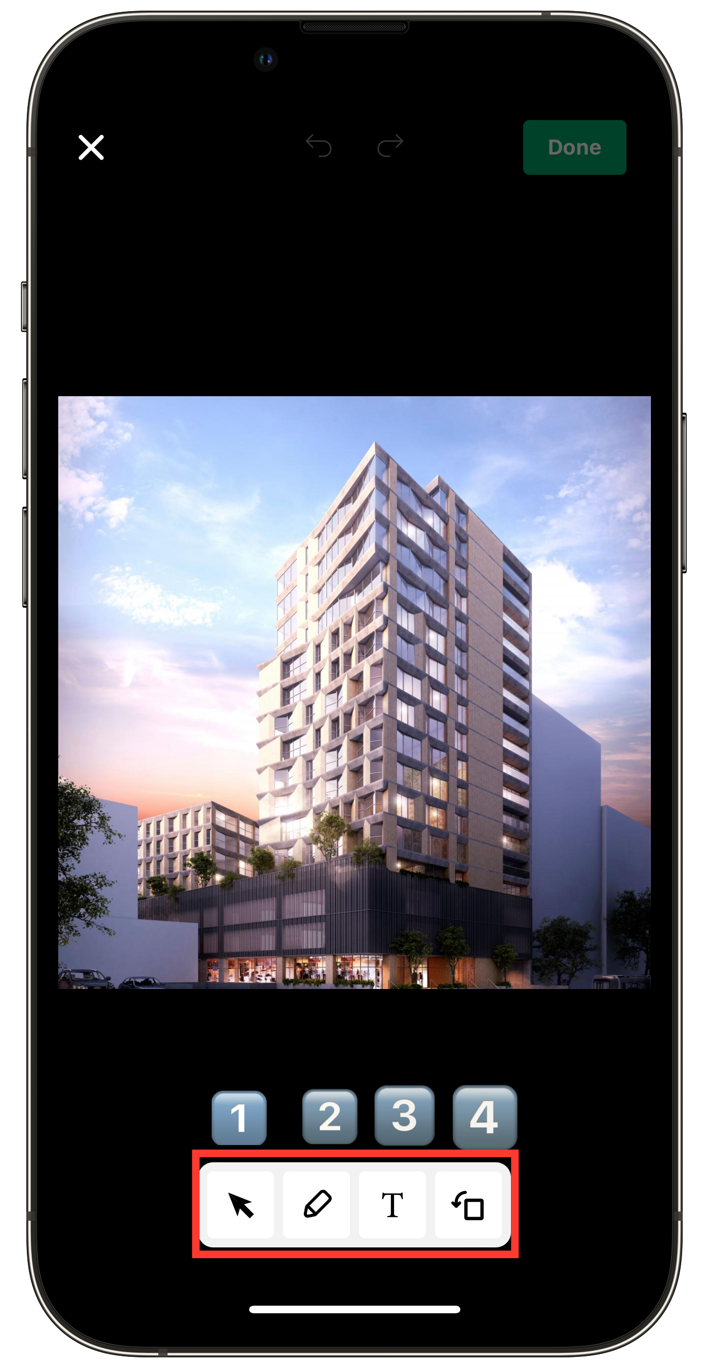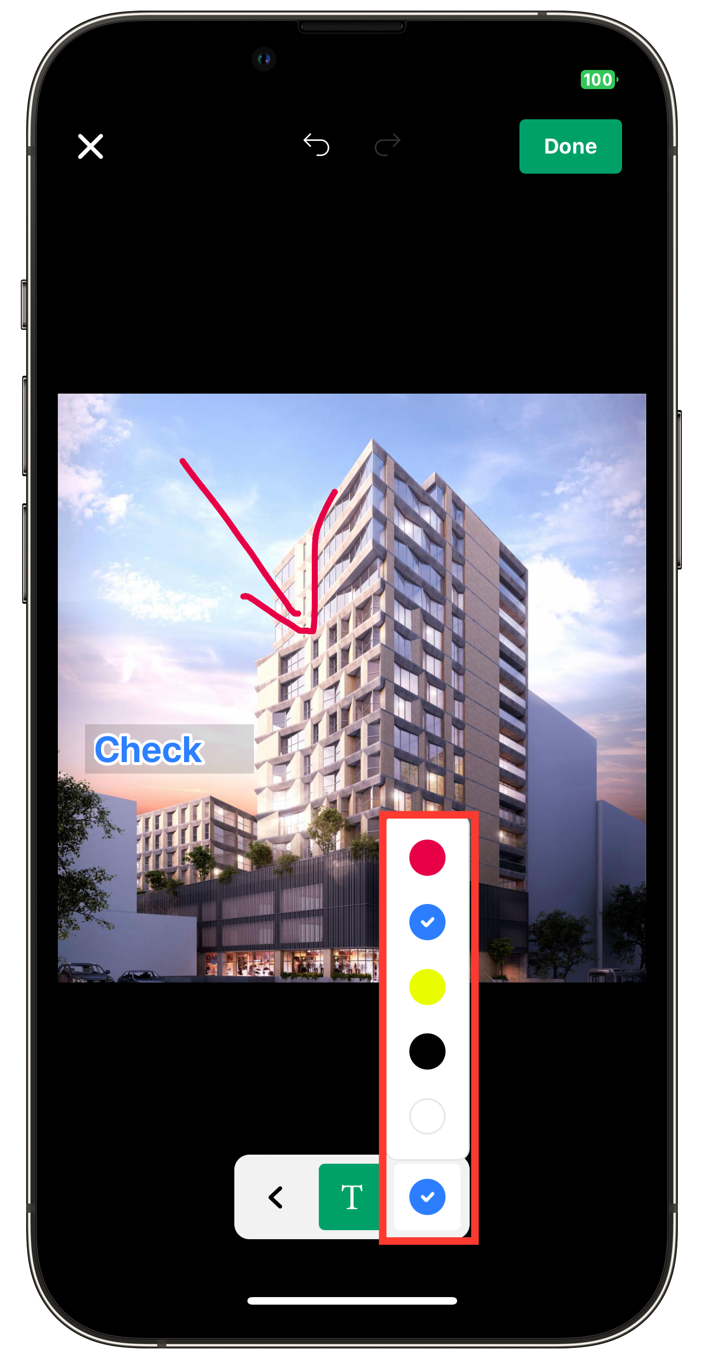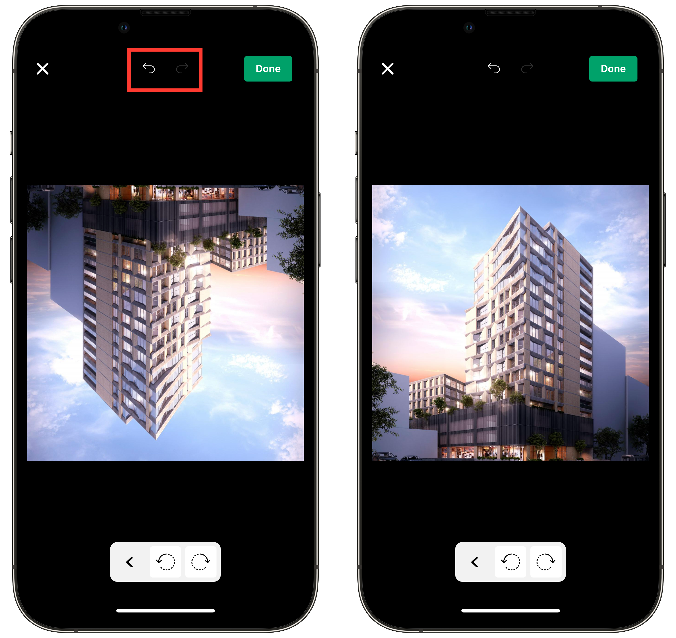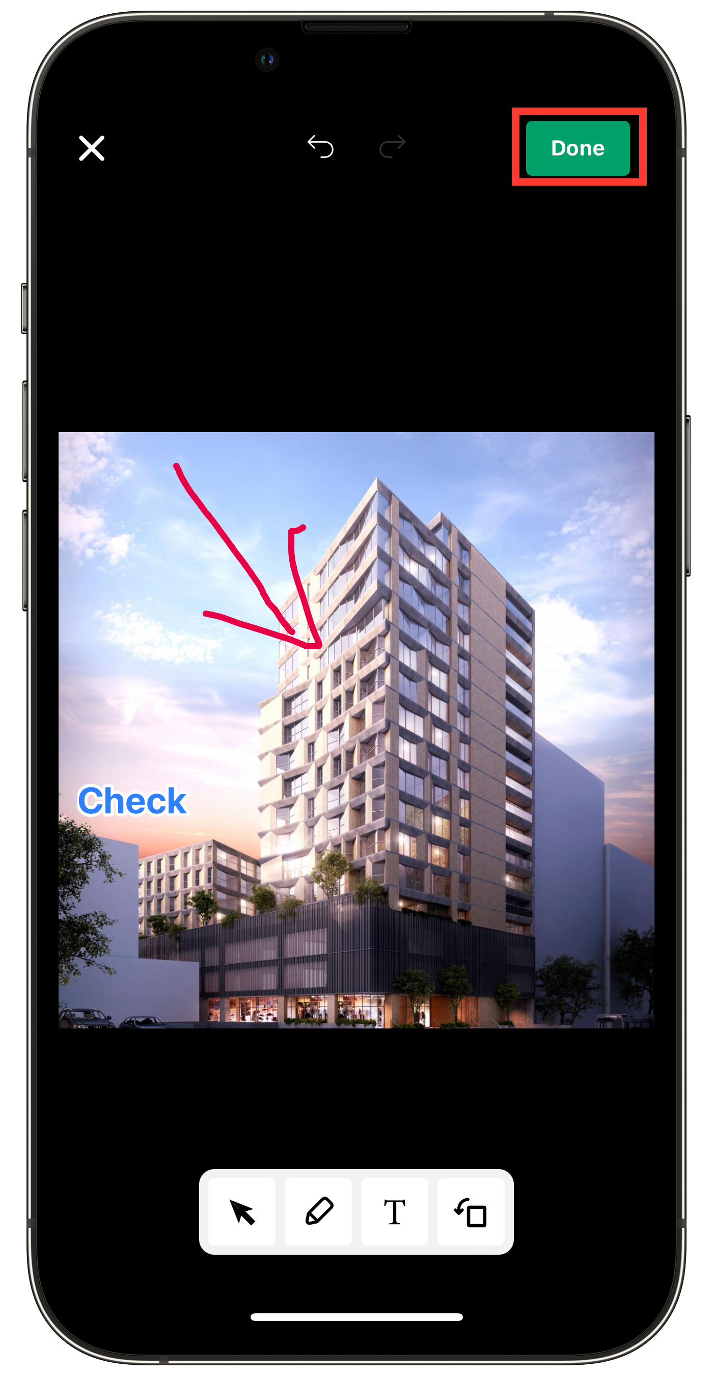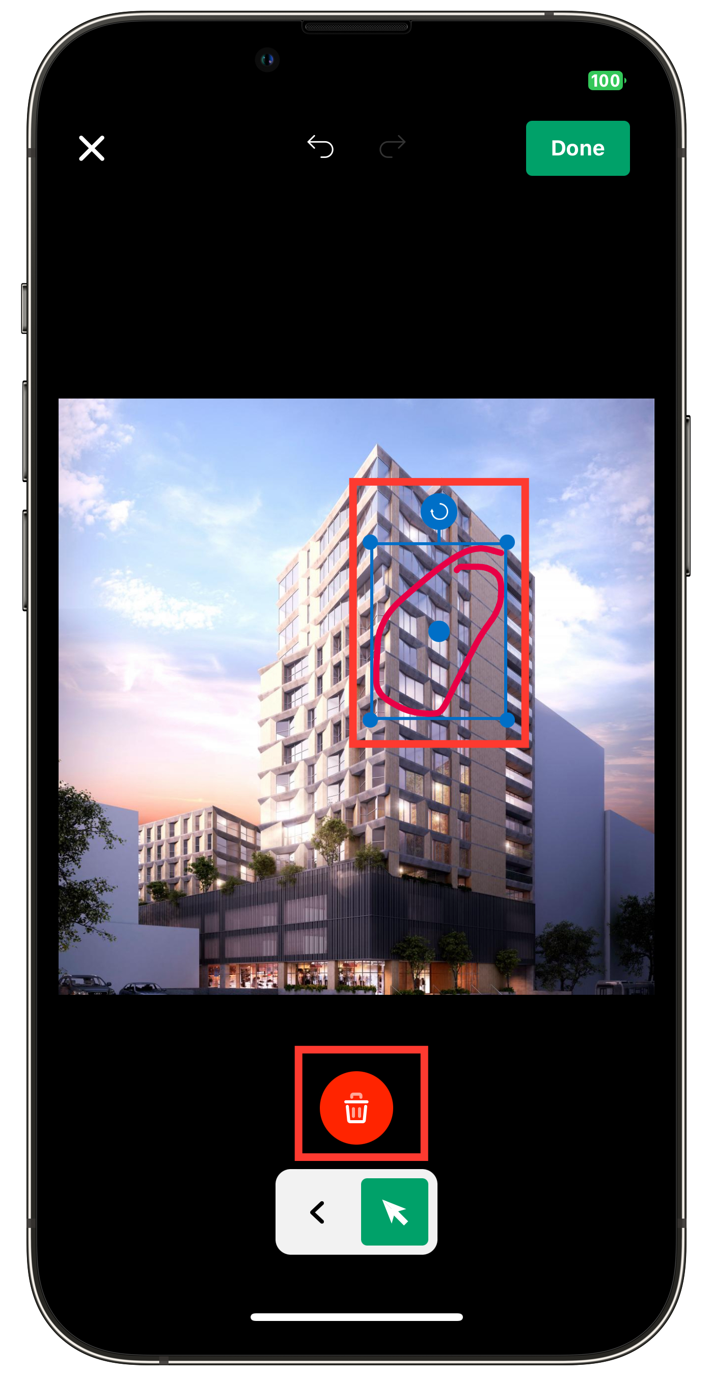 Tap the red-framed area at the top of the photo to undo the previous action.