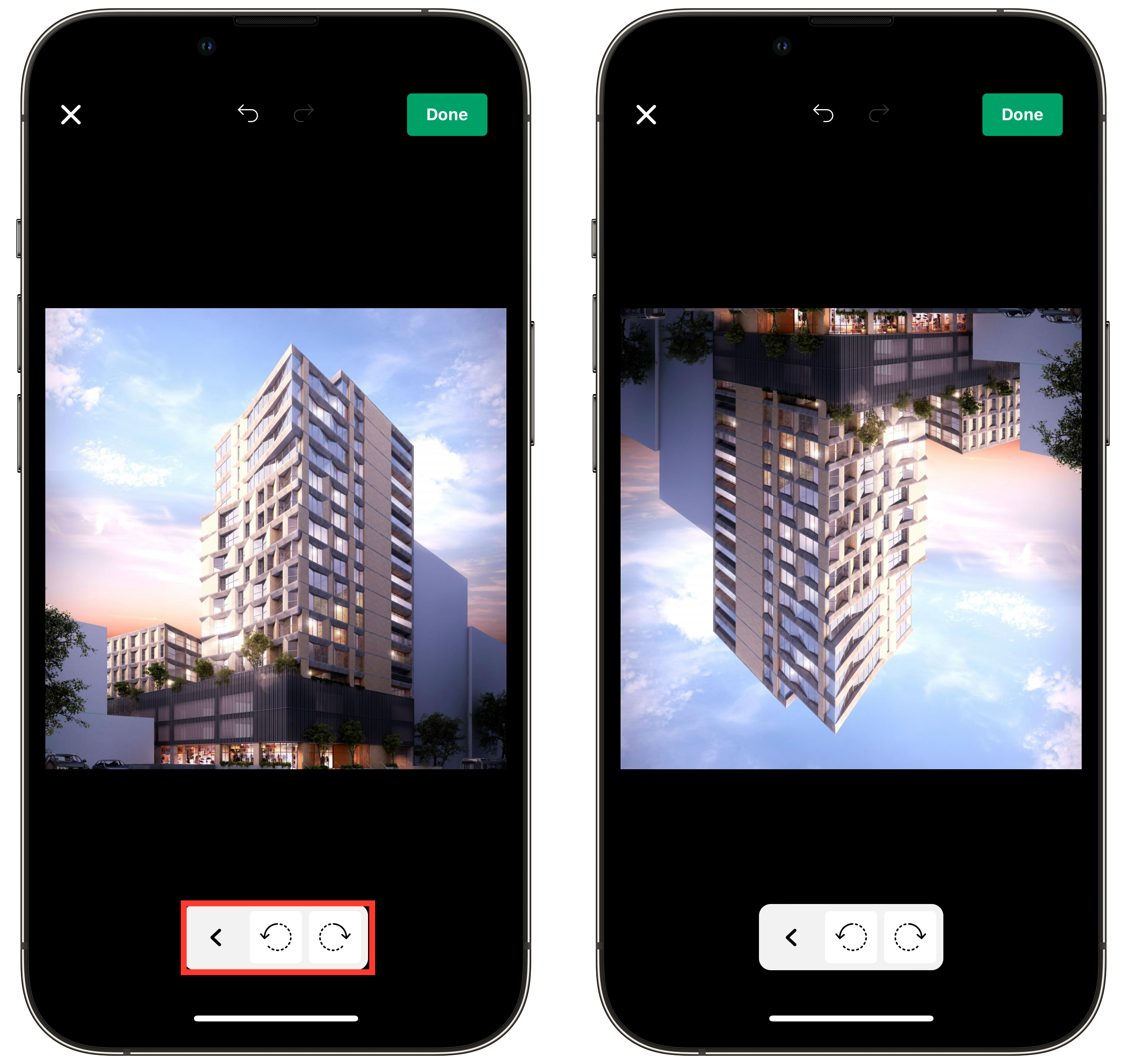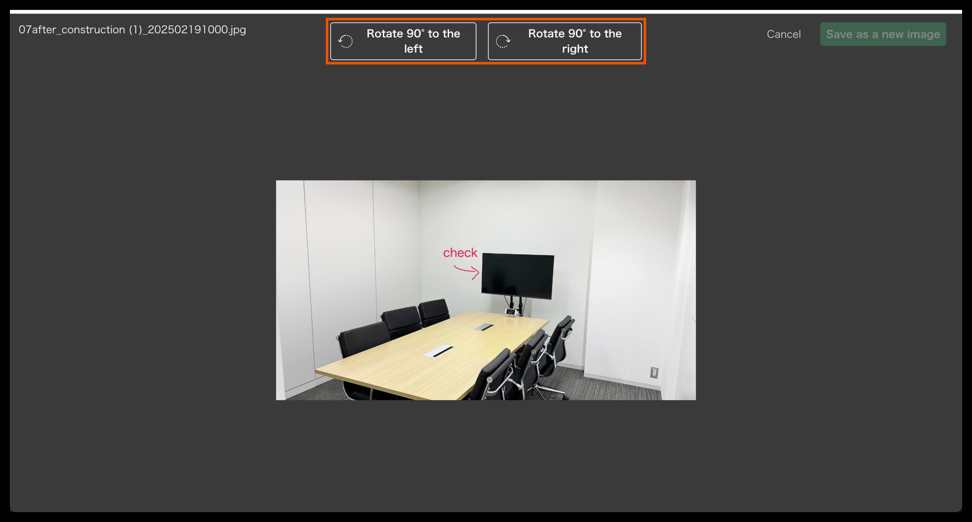 Tap the red-framed area at the bottom of the page to rotate the photo.
