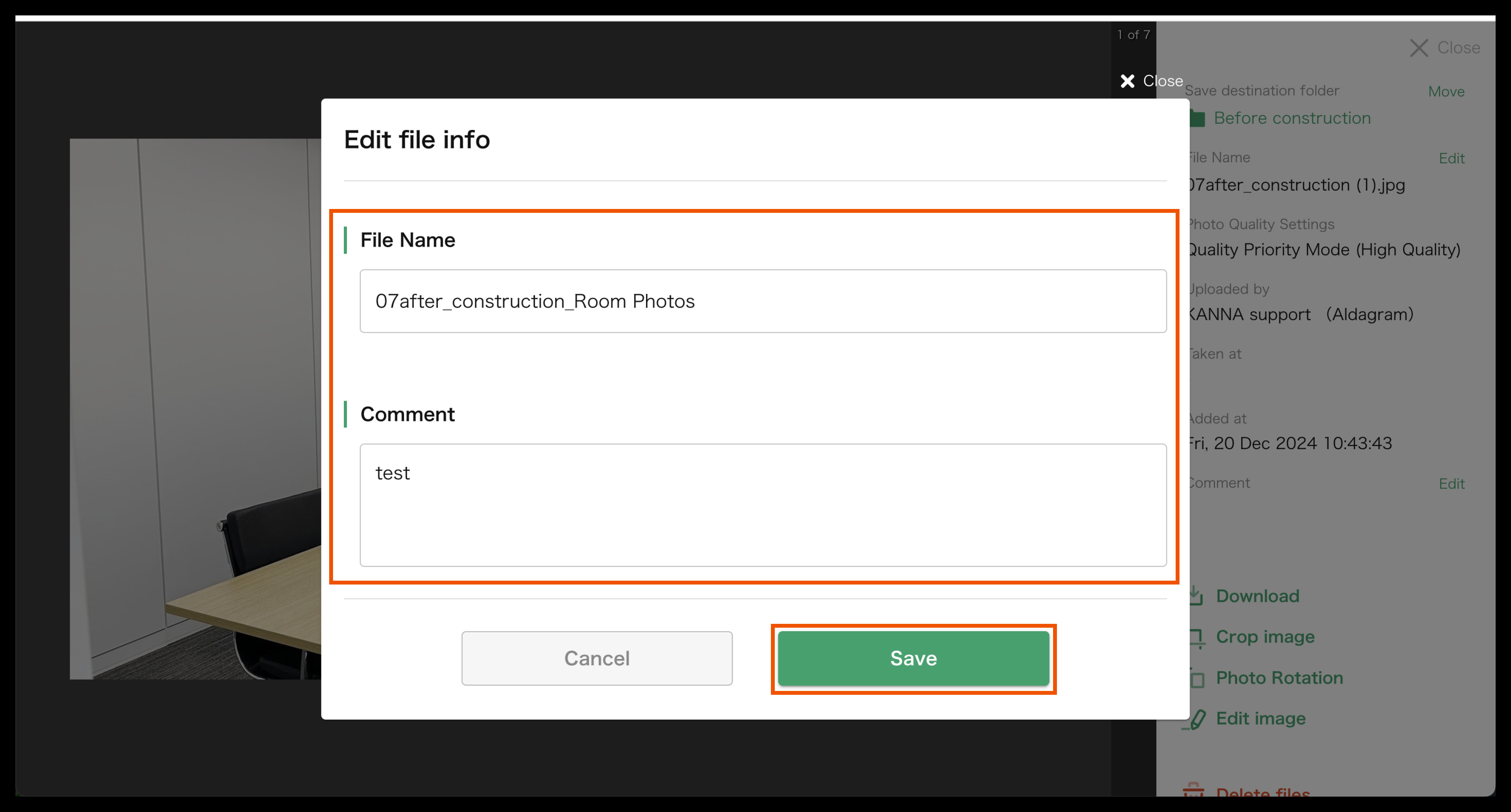 Tap "Edit" on the right, enter the file name and comments, then tap "Save."