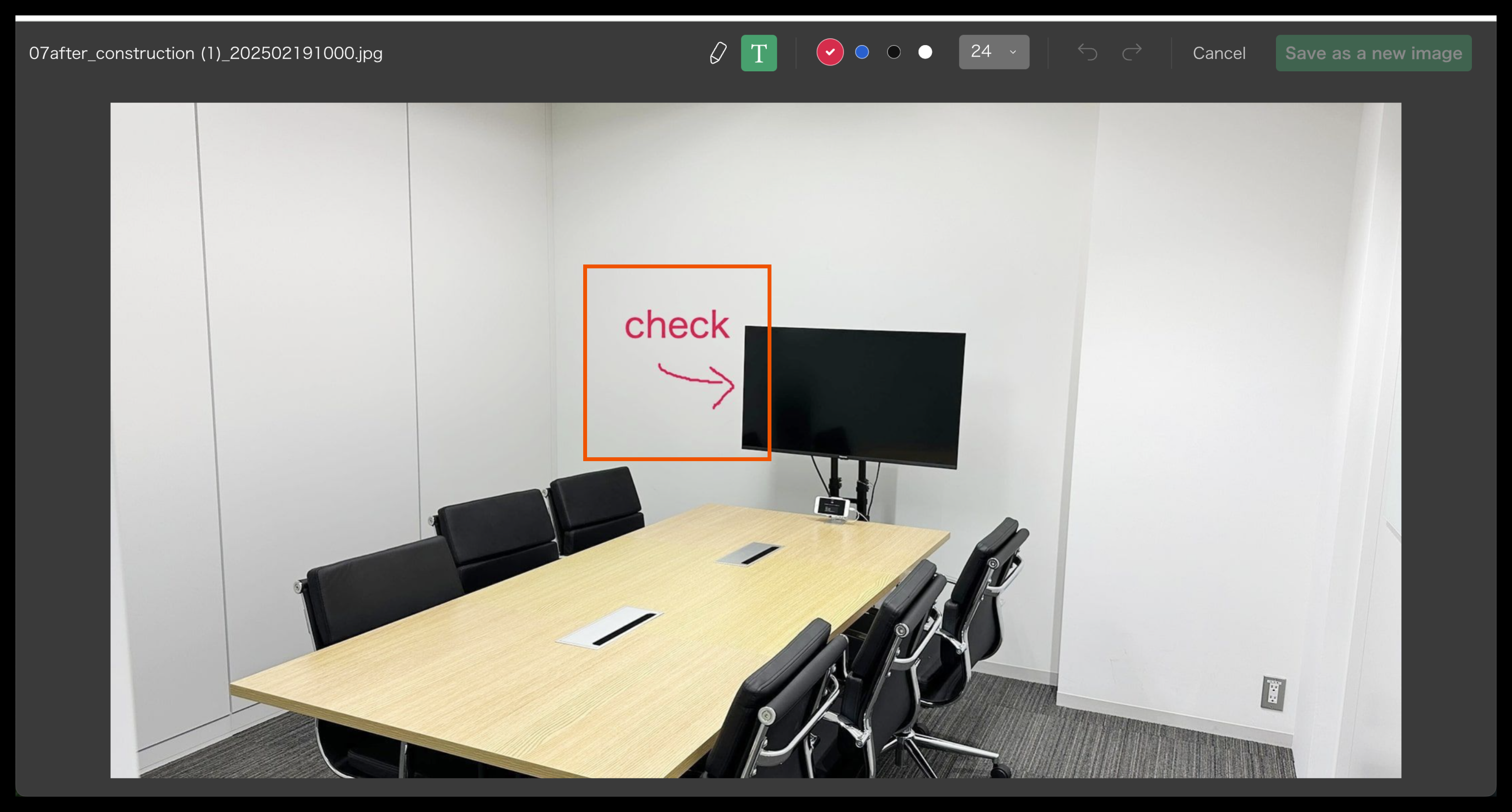 Photos saved in the folders can be edited. You can add information by inserting texts, drawing with a pen, or cropping the image to focus on the necessary details to make it easier to share information, Also you can rotate pictures.