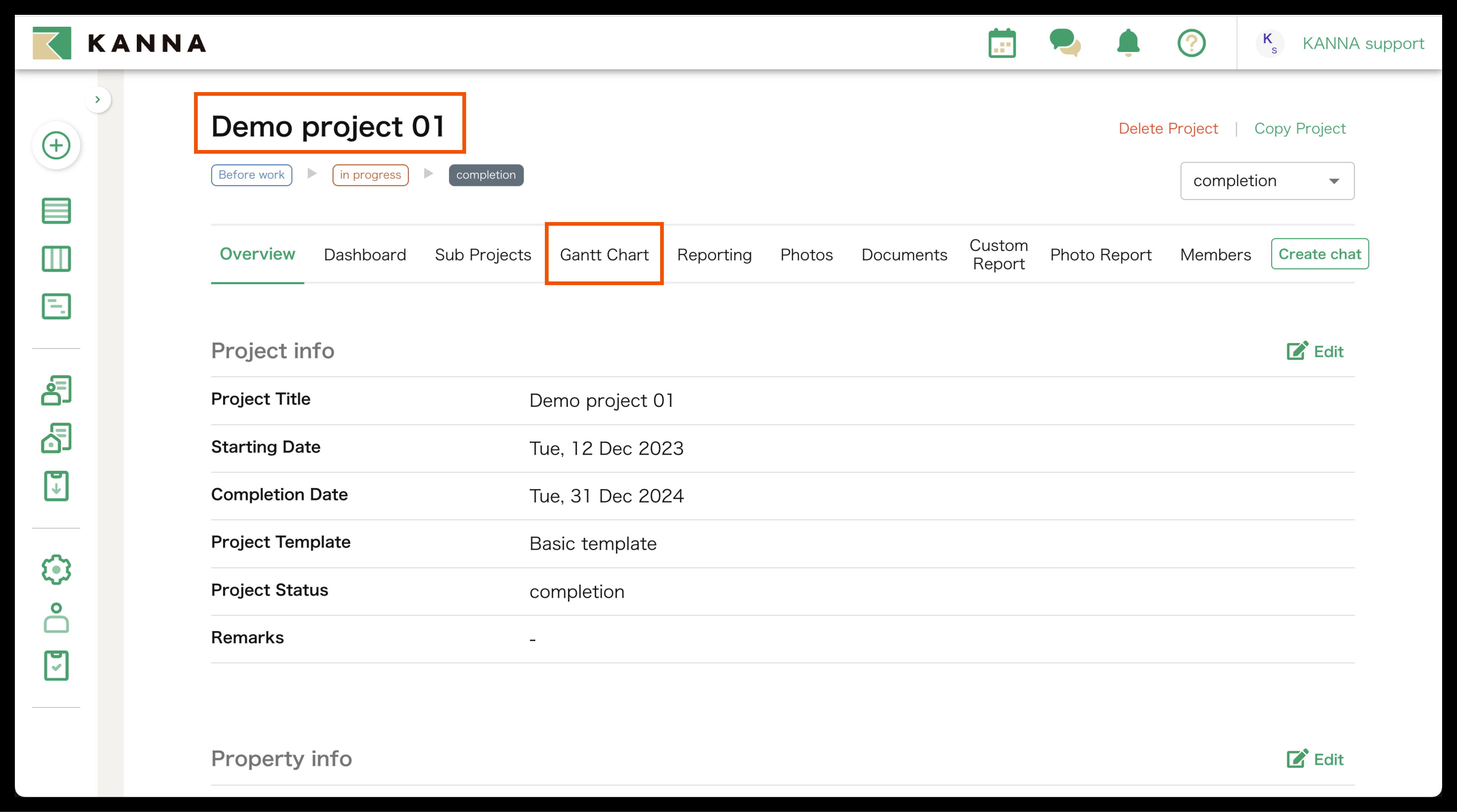 [Sub-project]: Created as a child project, allowing storage of photos, documents, etc.