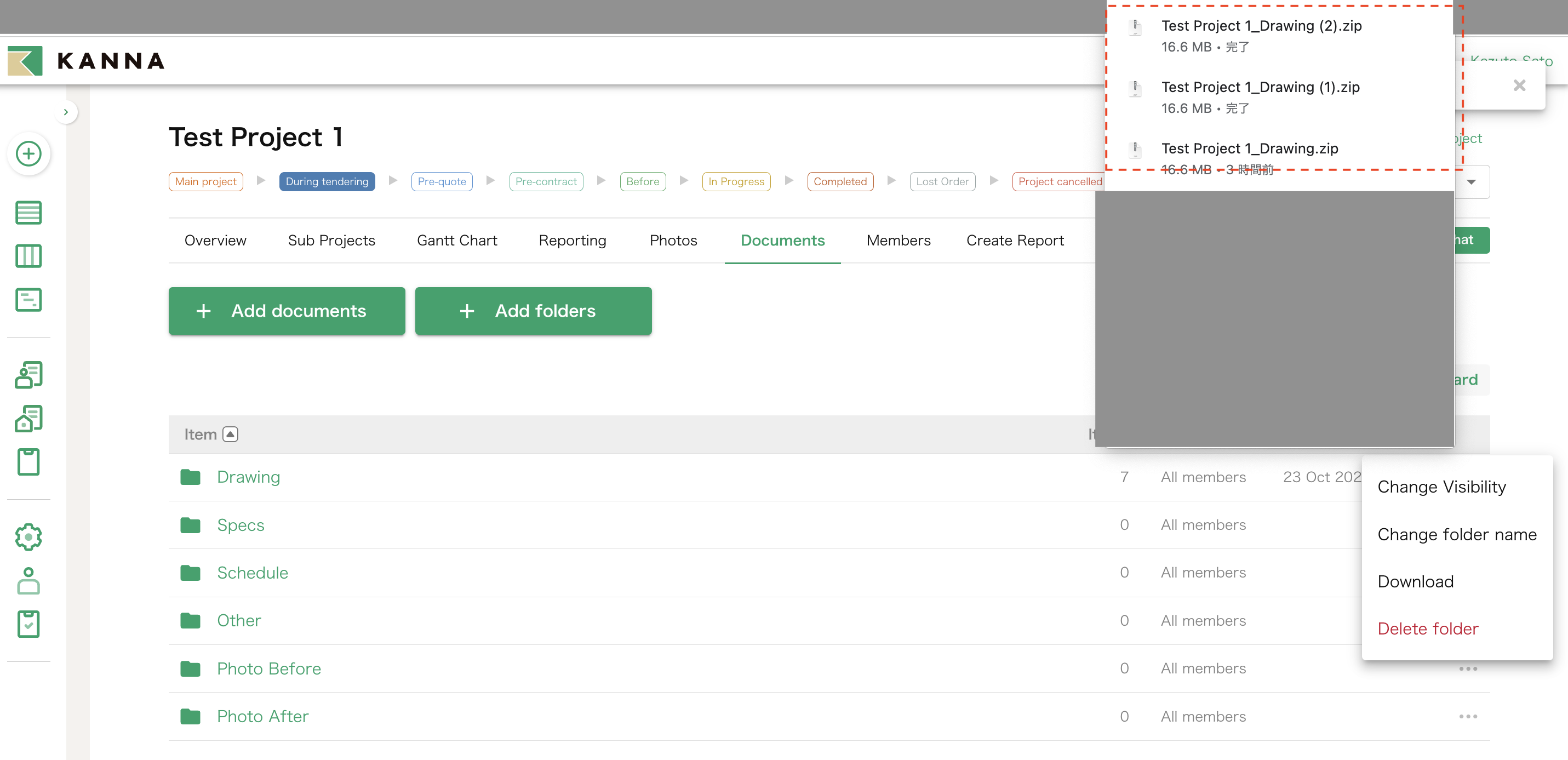 Note: The specifications are for downloading documents by folder. Please note that batch downloading by project is not available.