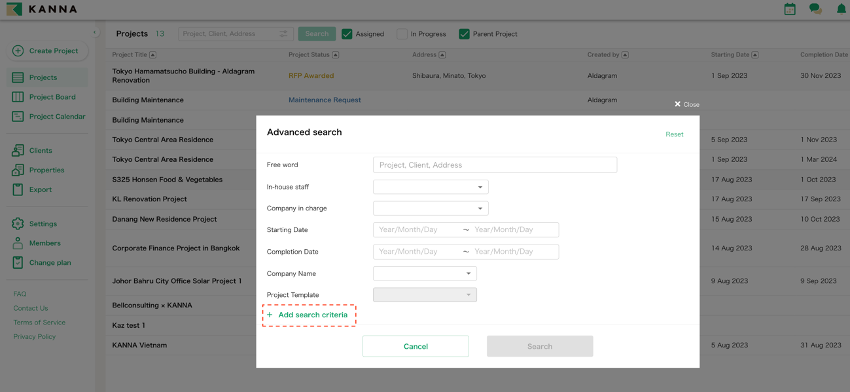You can now customize your project search bar. By adding search criteria, you can search your project more easily.【Related article】