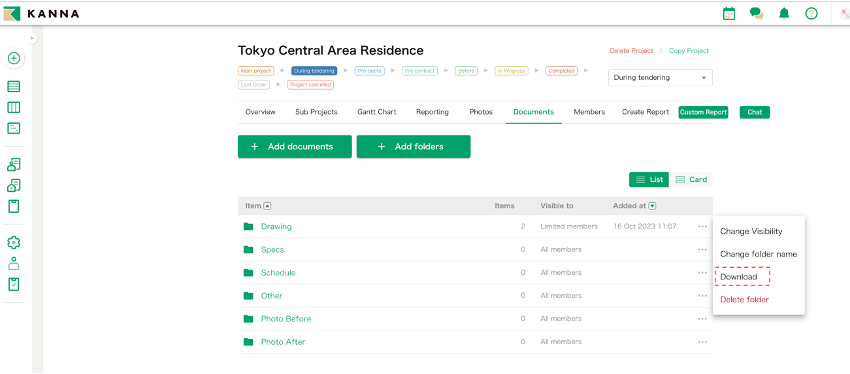 You can now download a document folder. This allows you to download all the files in the folder simultaneously.【Related article】