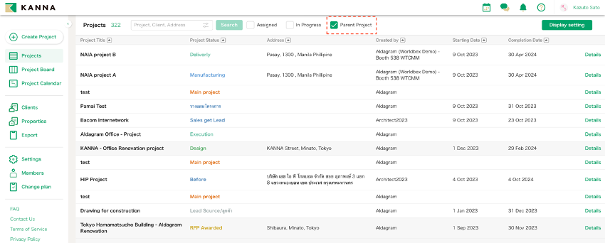In addition to “Assigned” and “In – Progress”, we have “Parent Project” checkbox now. You can see parent projects only by clicking this button.【Related article 1】【Related article 2】