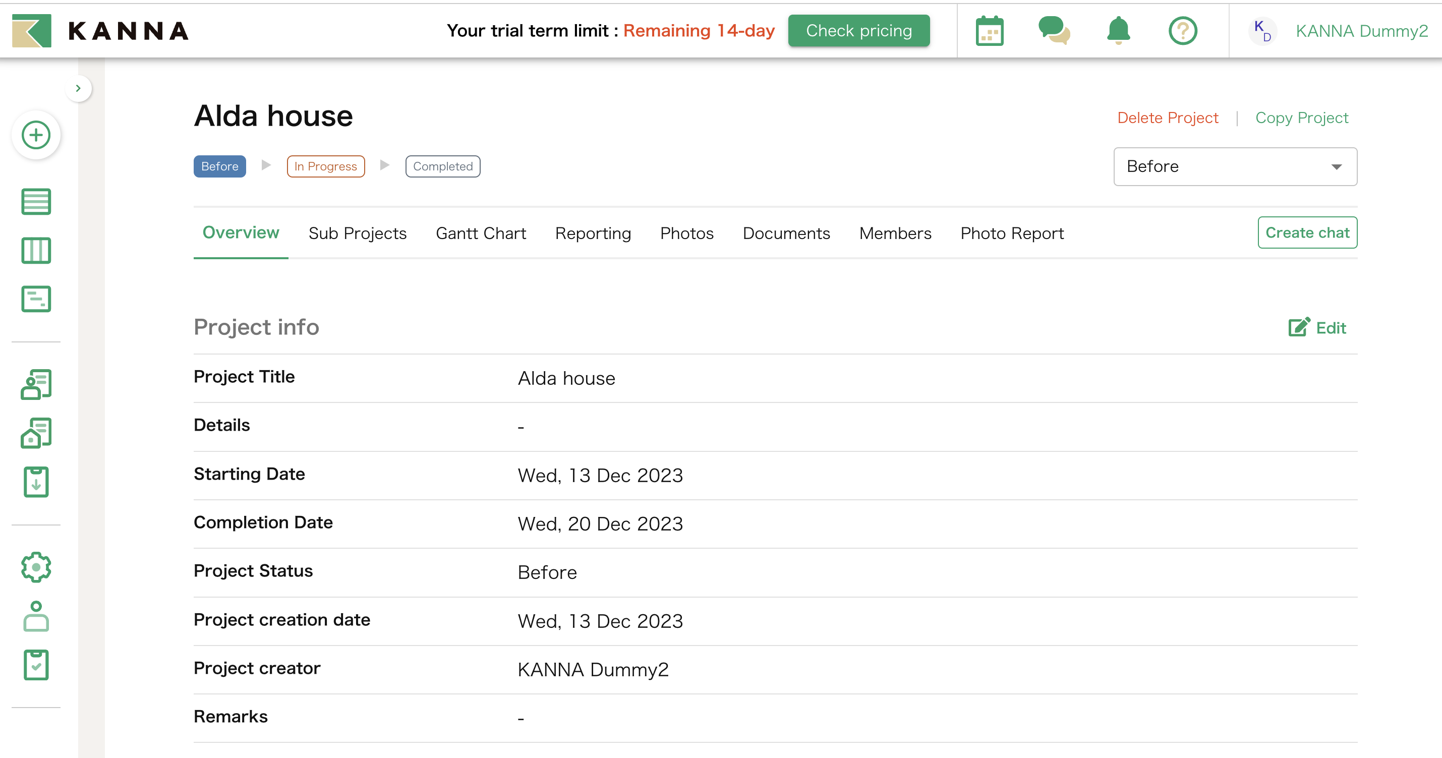 Overview page before the change