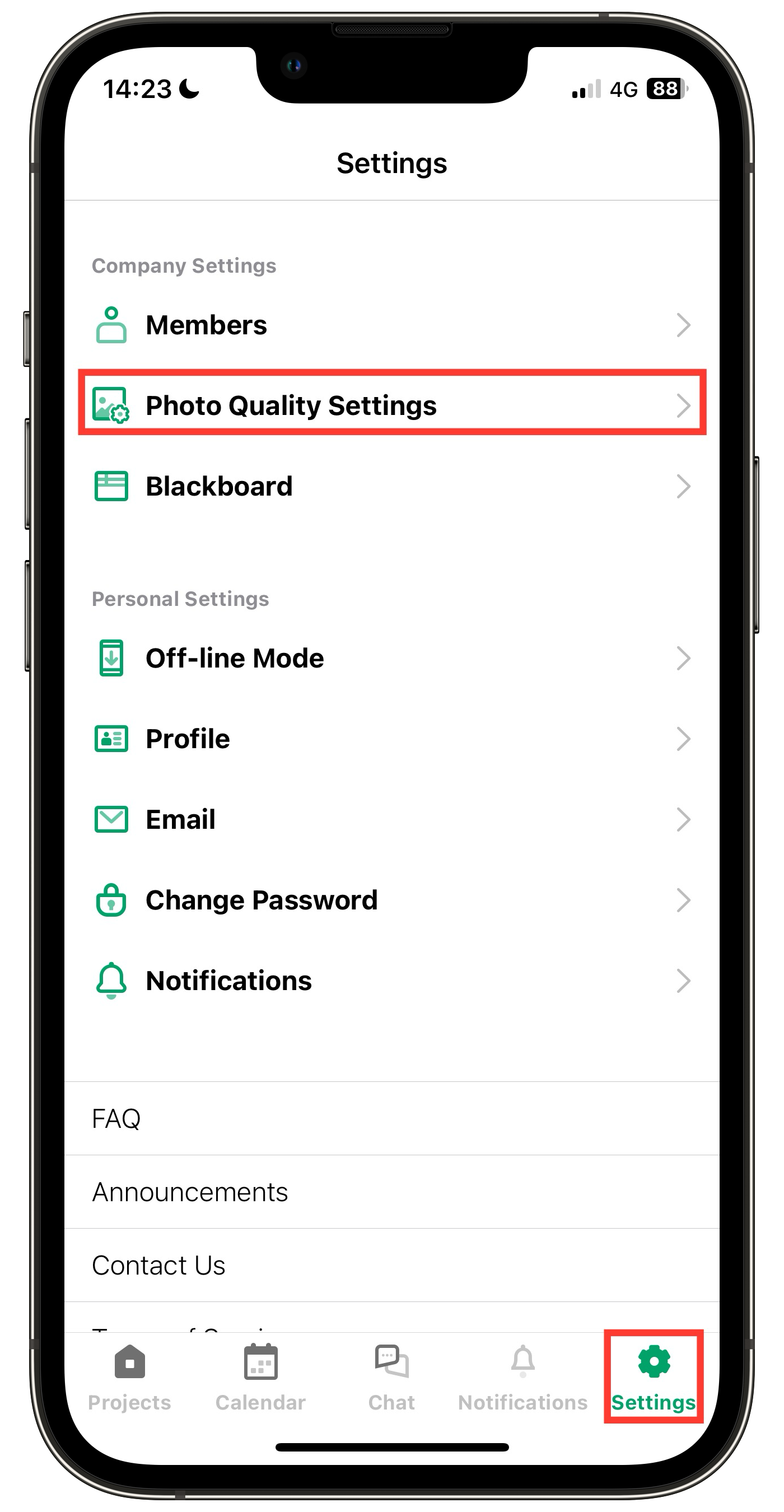 1. Tap [Photo Quality Settings] from [Settings]