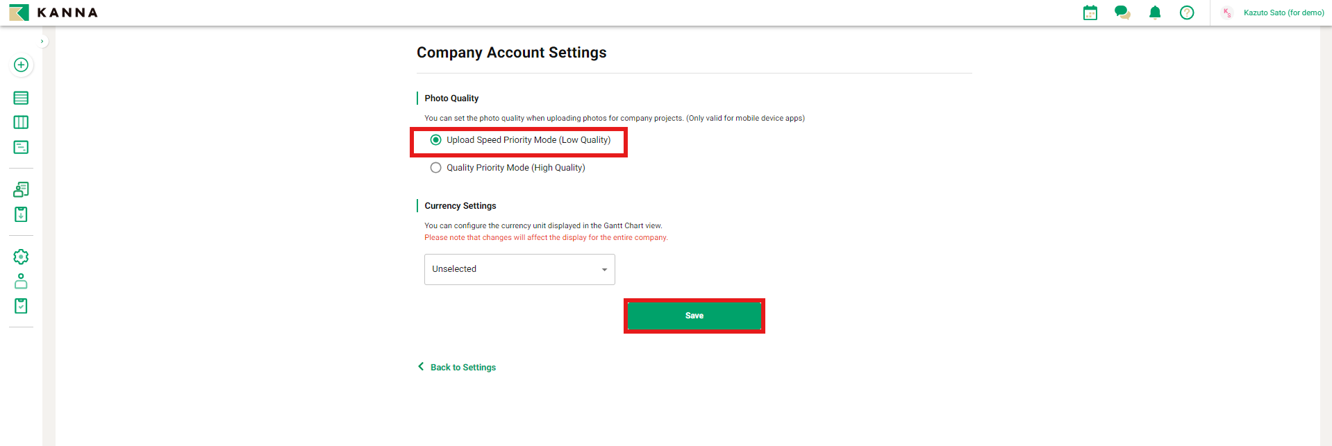 2. Select [Upload Speed Priority Mode (Low Quality)] and click [Save]