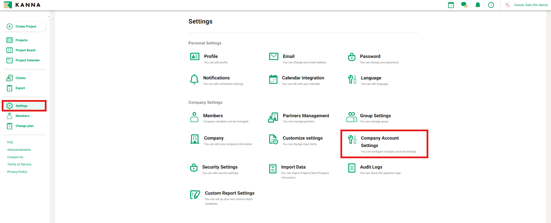 1. Click [Company Account Settings] from [Settings]