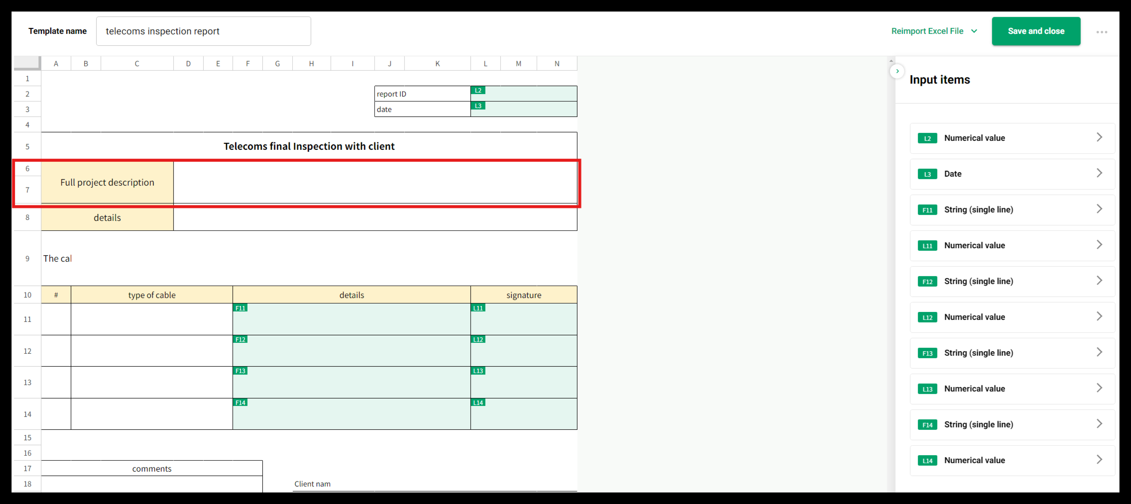 Reloading the Excel file is suited for minor changes, such as merging cells or modifying wording. For significant changes, please create a new template.