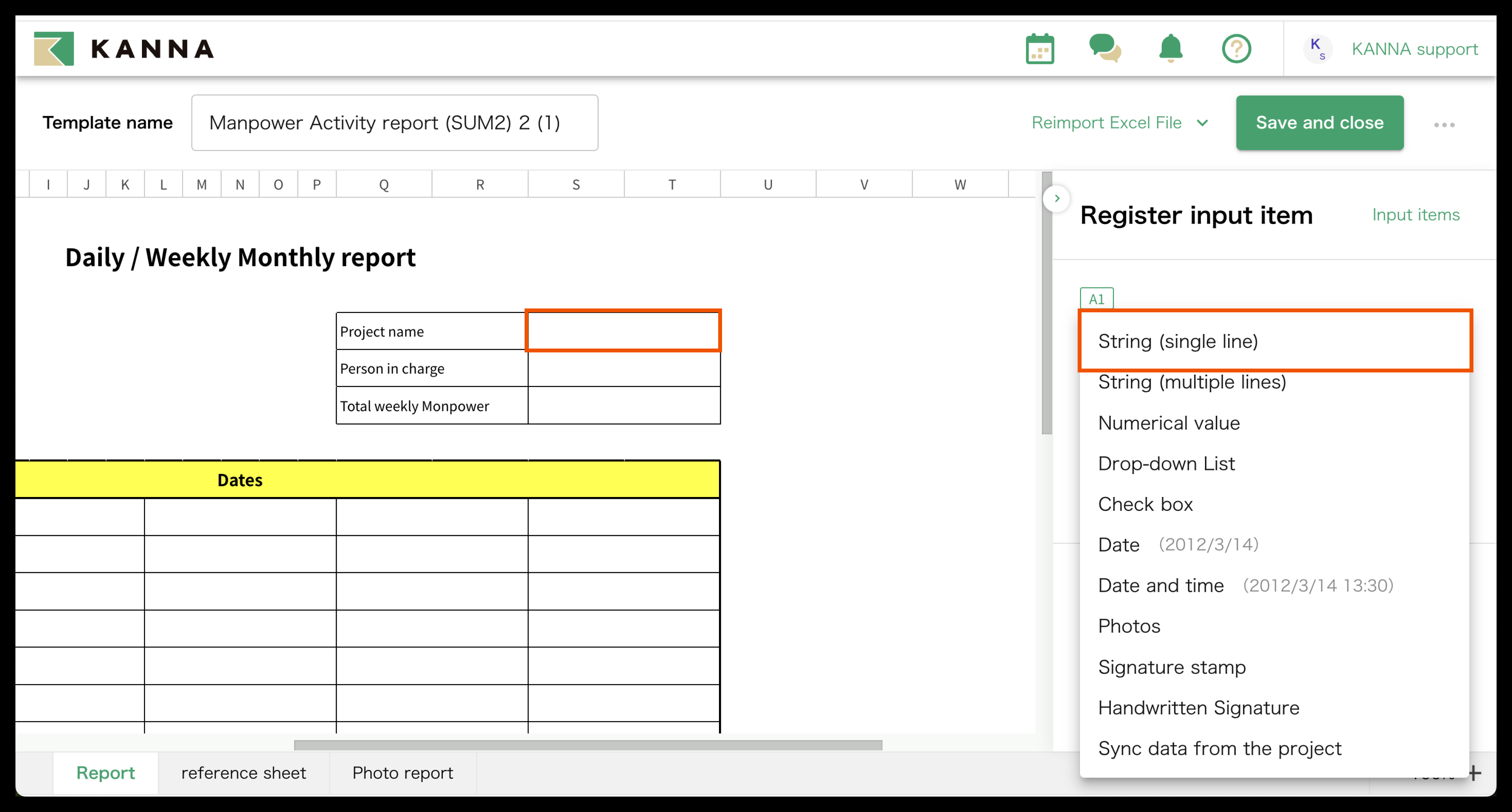 If you want to make edits to a registered report template or input settings, you can reload the Excel file and apply only the modifications while keeping the previously set input fields intact.