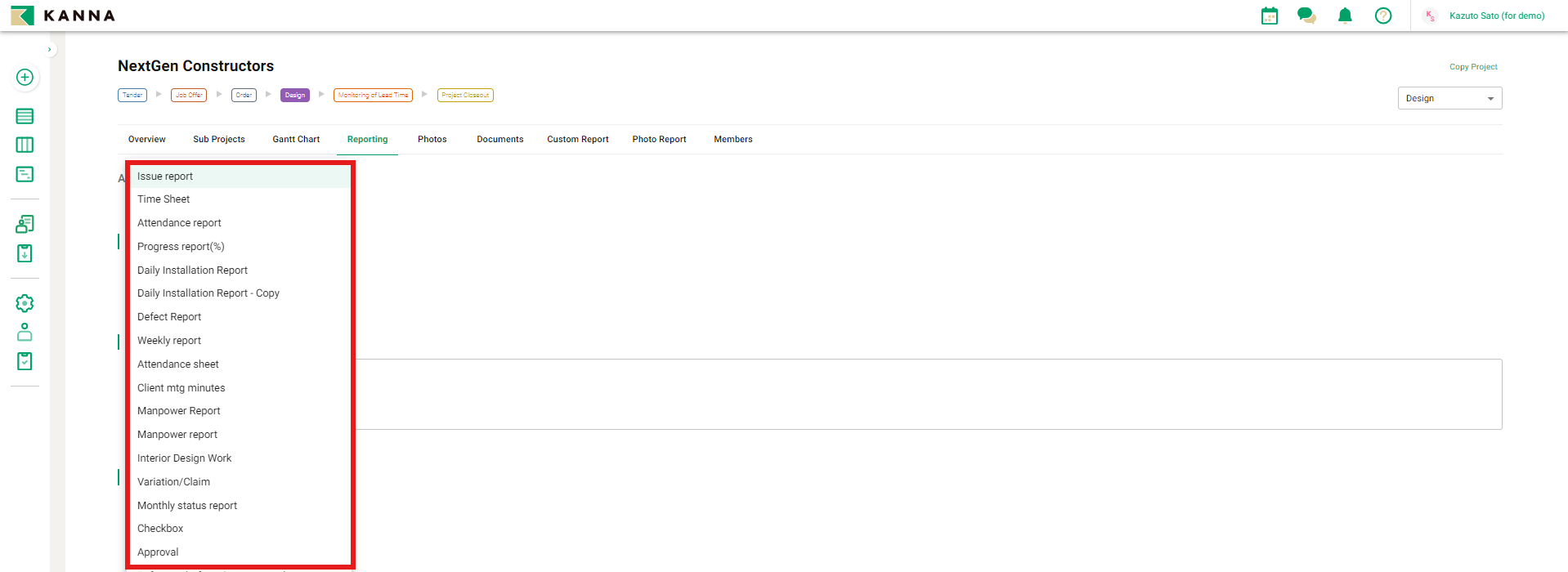 By using this customization feature, you can easily and quickly share and check reports, such as labor reports or work start reports.