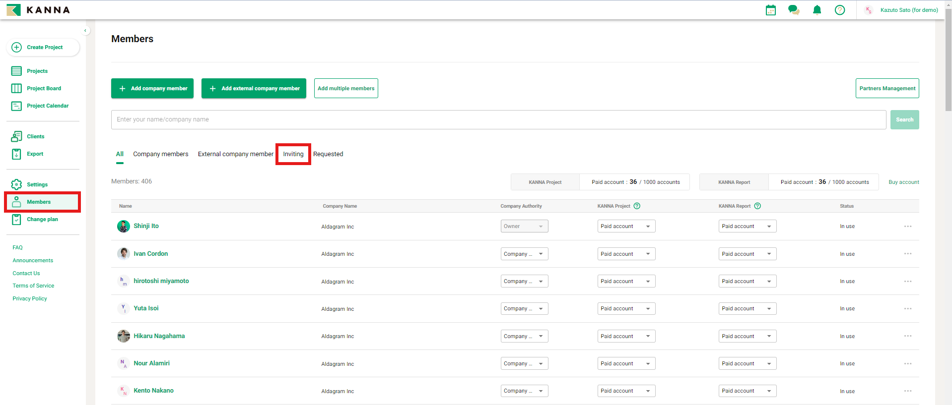 1. In Members, click on Inviting