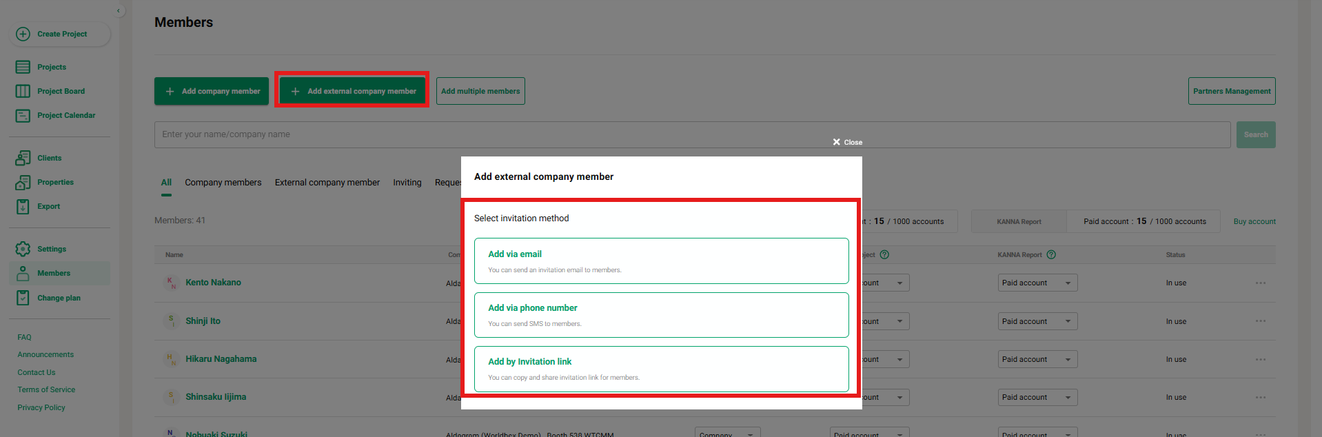 For detailed instructions on inviting external members, please refer to here.