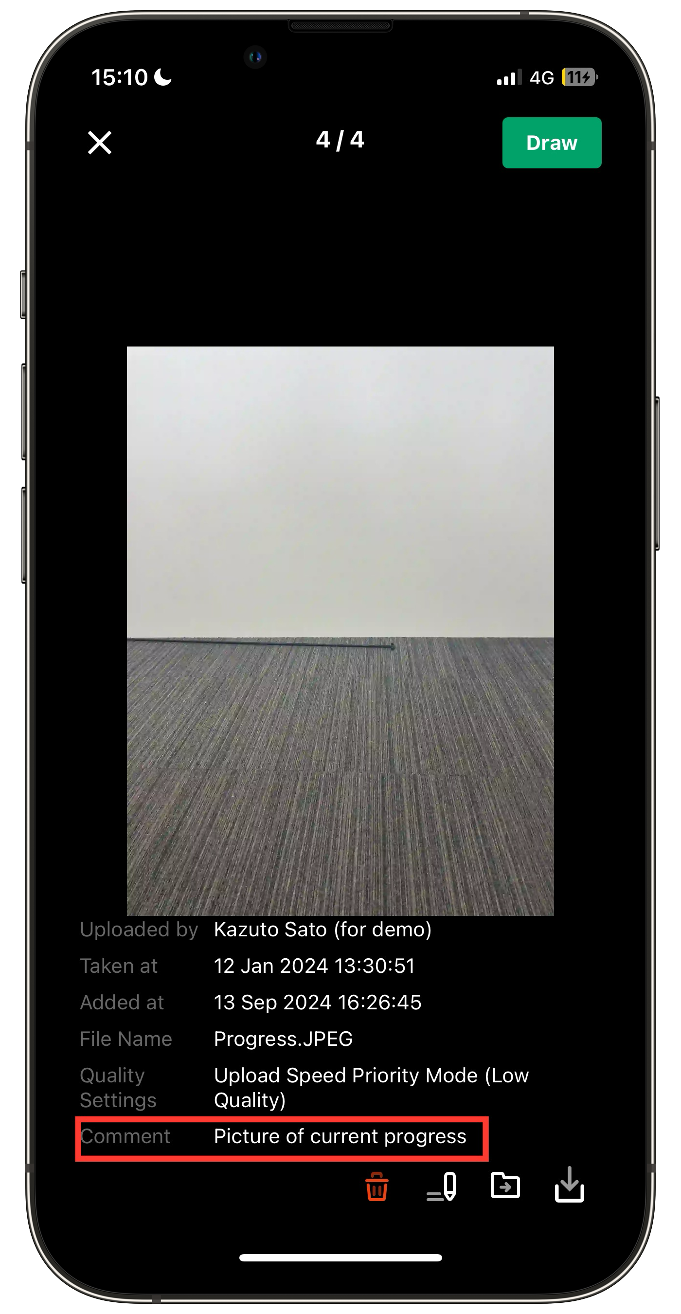 Note: Members from external companies with General permissions within a project can only comment on their own photos.
