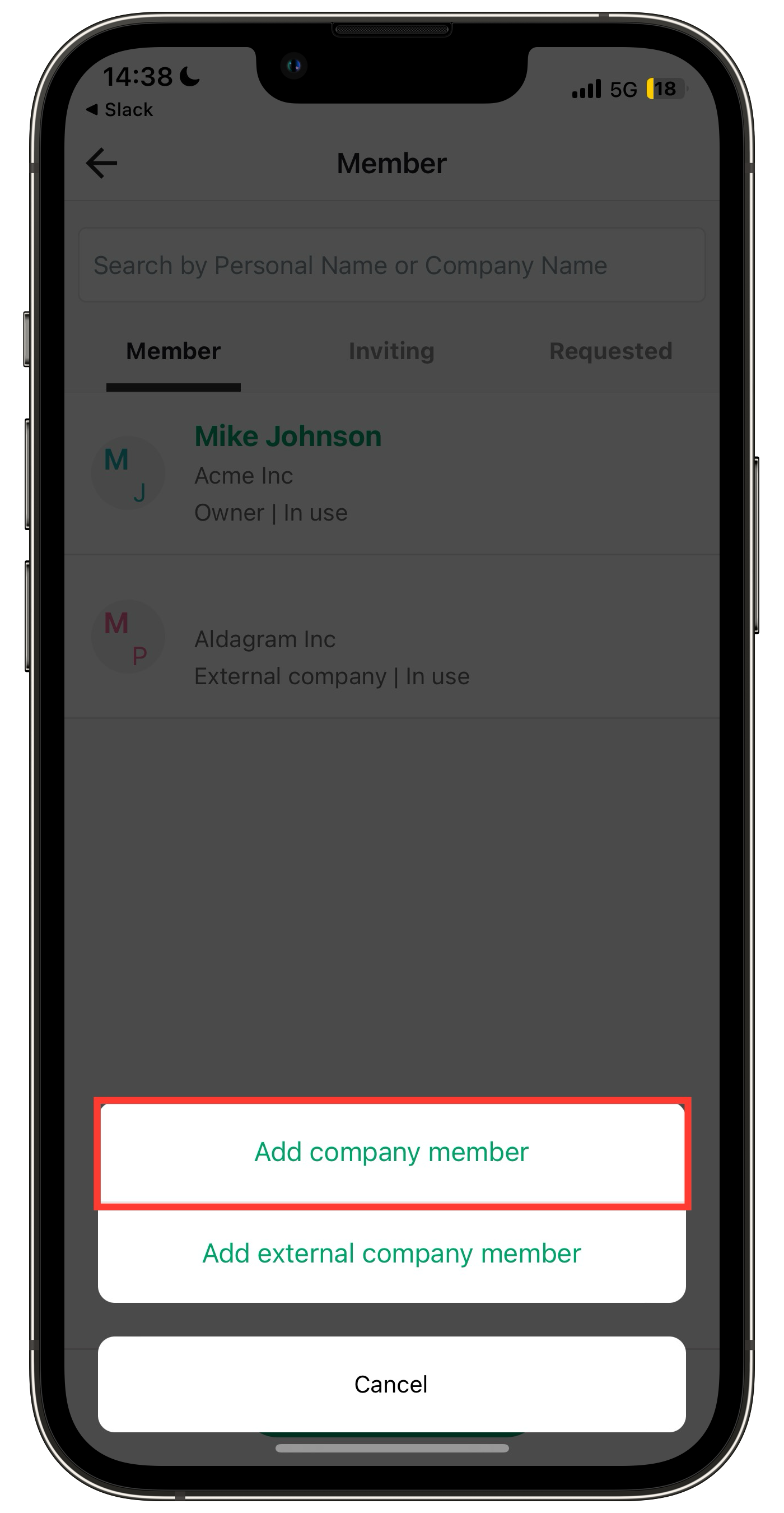 2. Tap [Add Member] and then [Add Another Company Member] and select the method of addition.