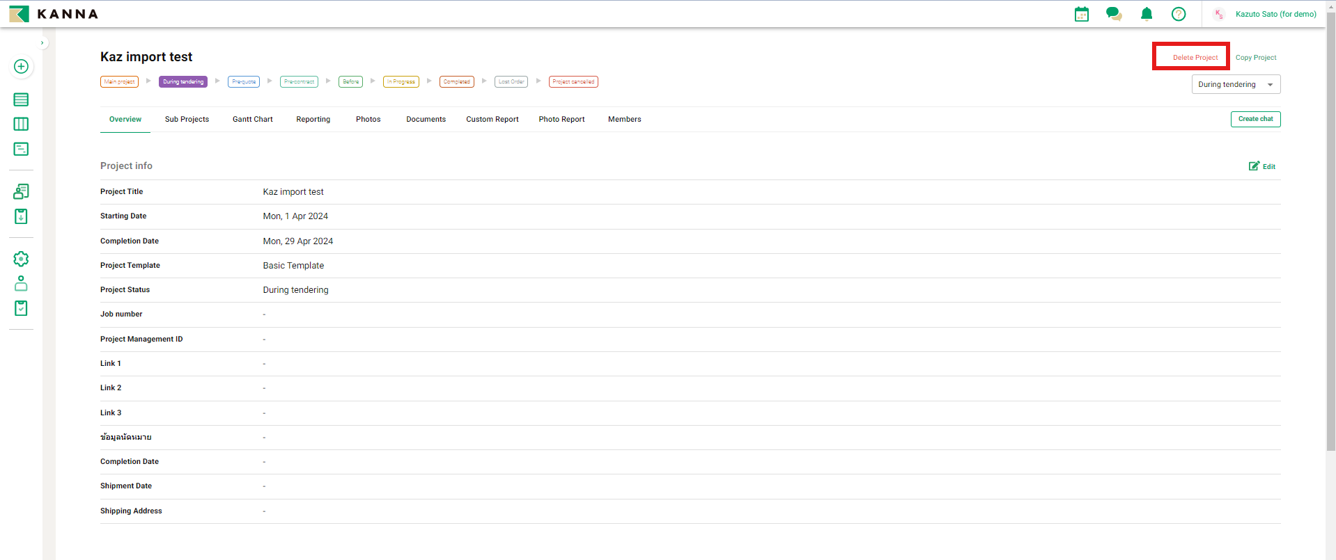 When a project is deleted, all associated information, including photos, documents, and chat history, will be permanently deleted, and it cannot be recovered afterwards. Please be careful when deleting a project.