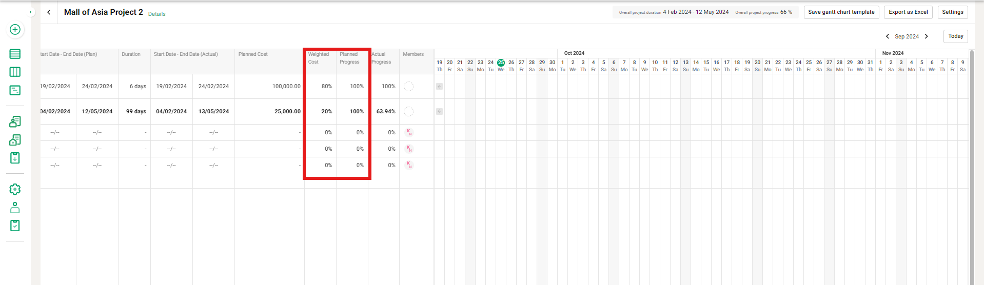 You can manage the overall project progress using two methods: "Planned Cost" and "Duration." 【Related Articles】