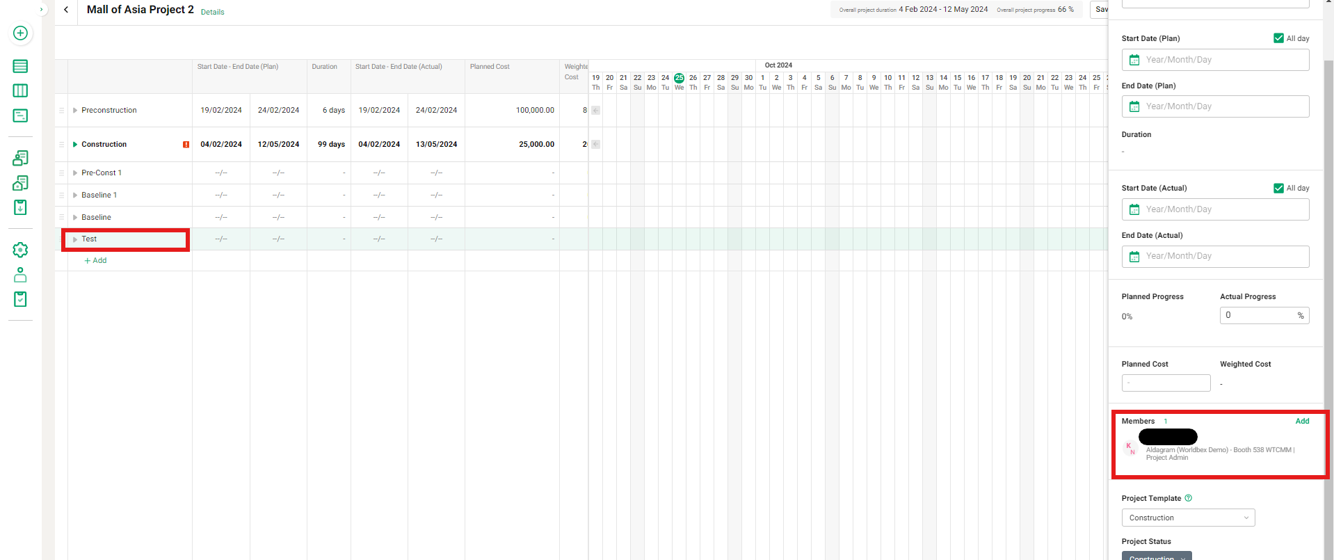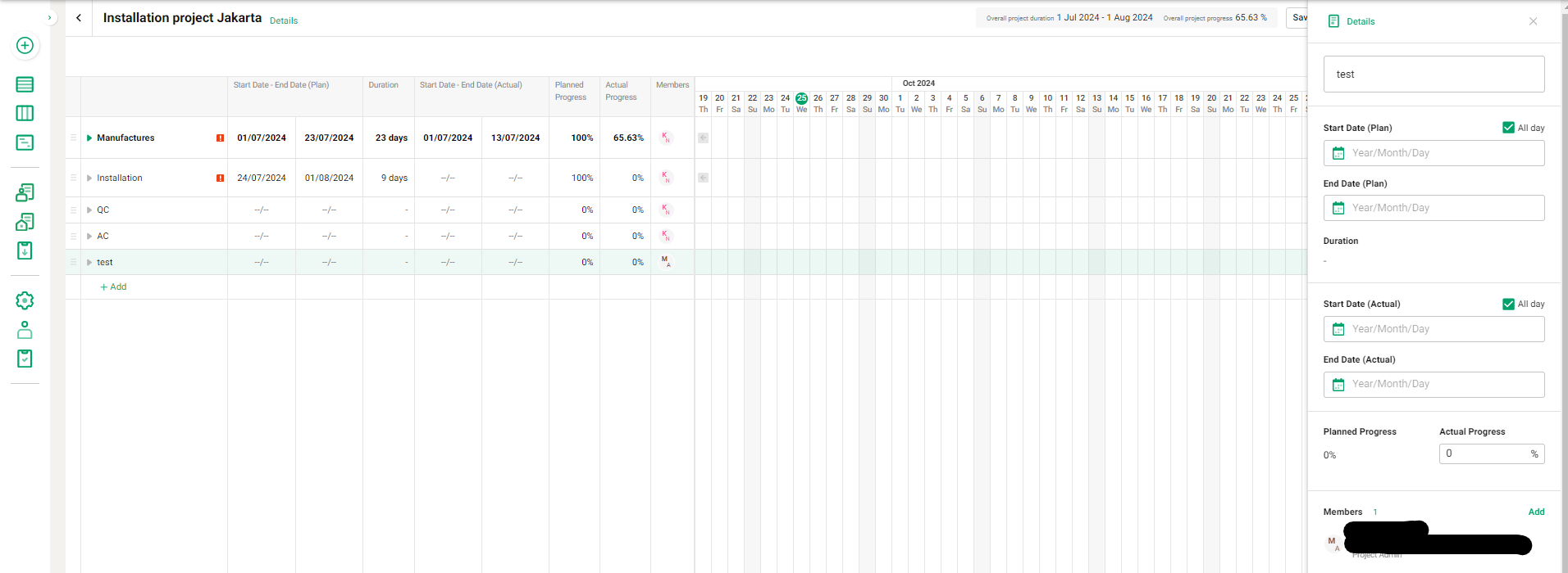 【KANNA Project】When creating a timeline using a Gantt chart template, the creator will be added as Project Admin .