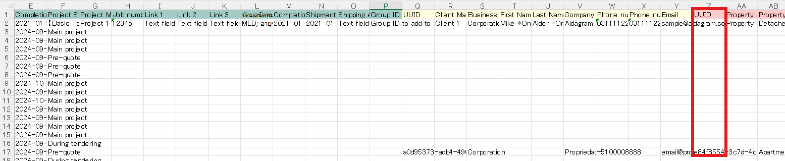 When using imports to create a project, you can link the project to the property by entering the Property Management ID (the same data as the Property Management ID already imported into KANNA), property information, project overview, and other relevant items before importing.