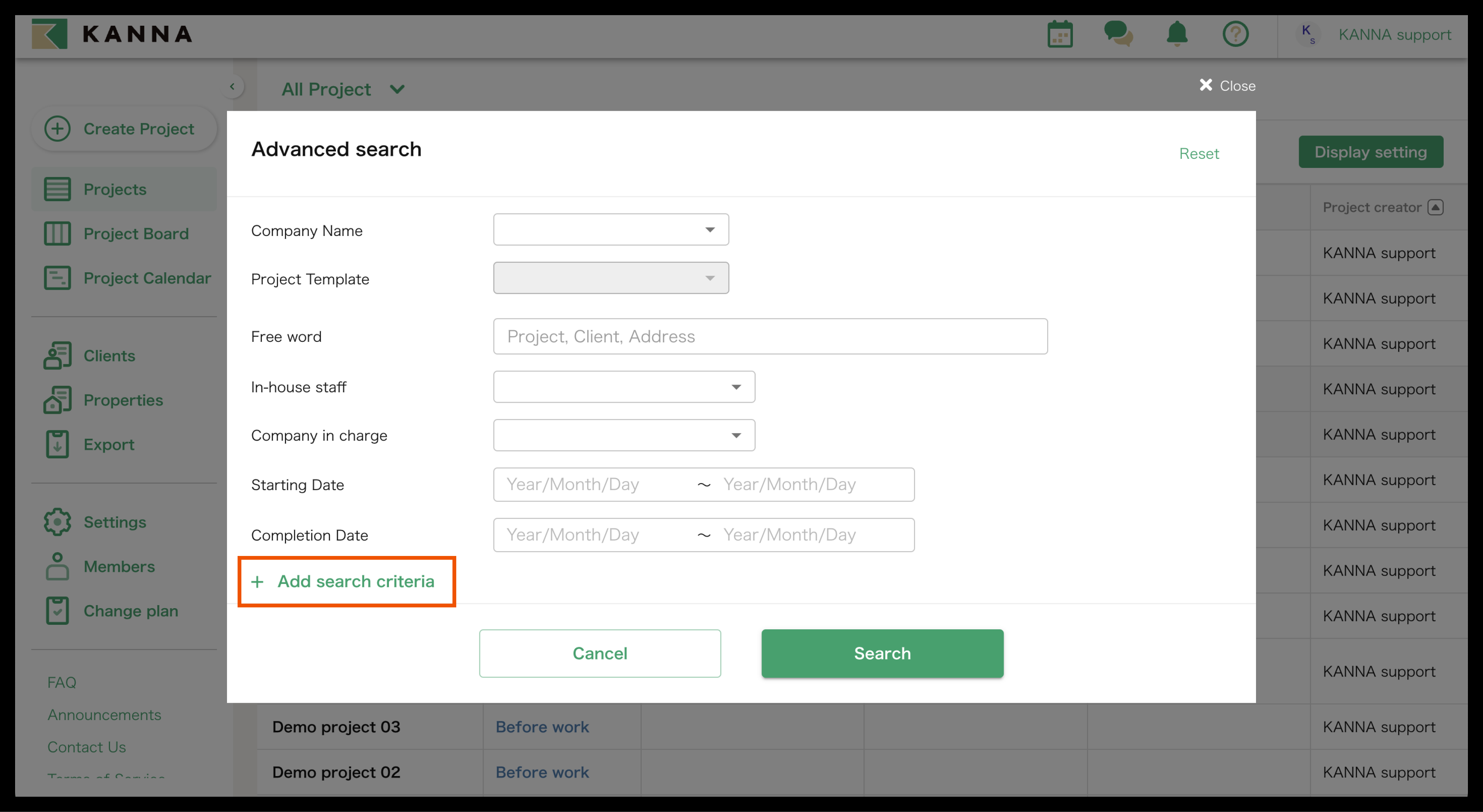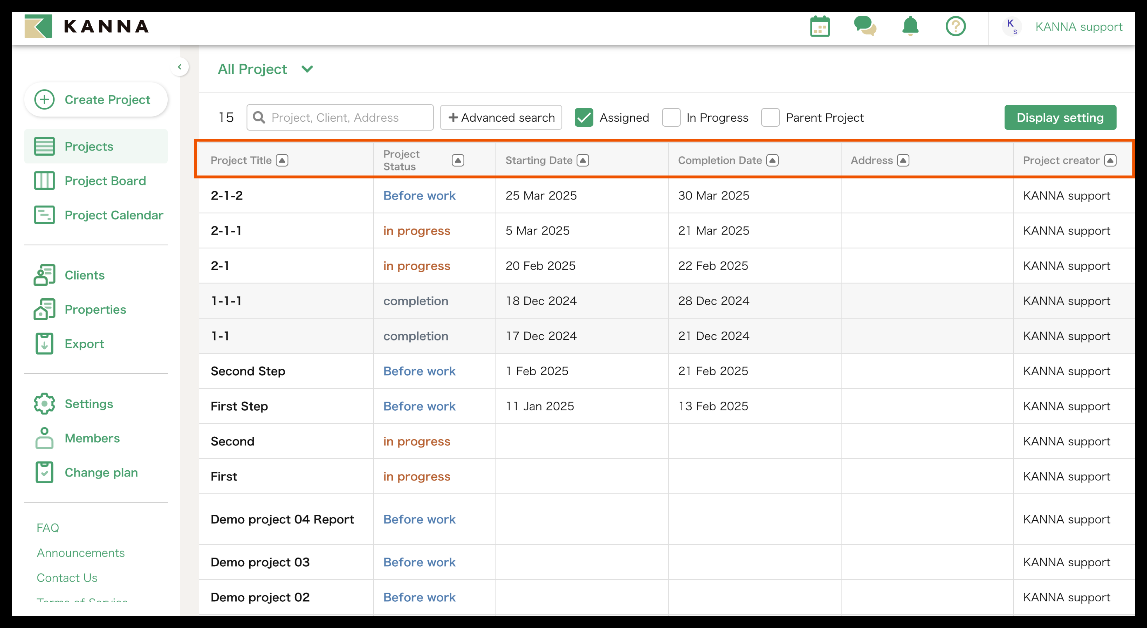 KANNA Project] You can now browse and search in more detail in Project List.