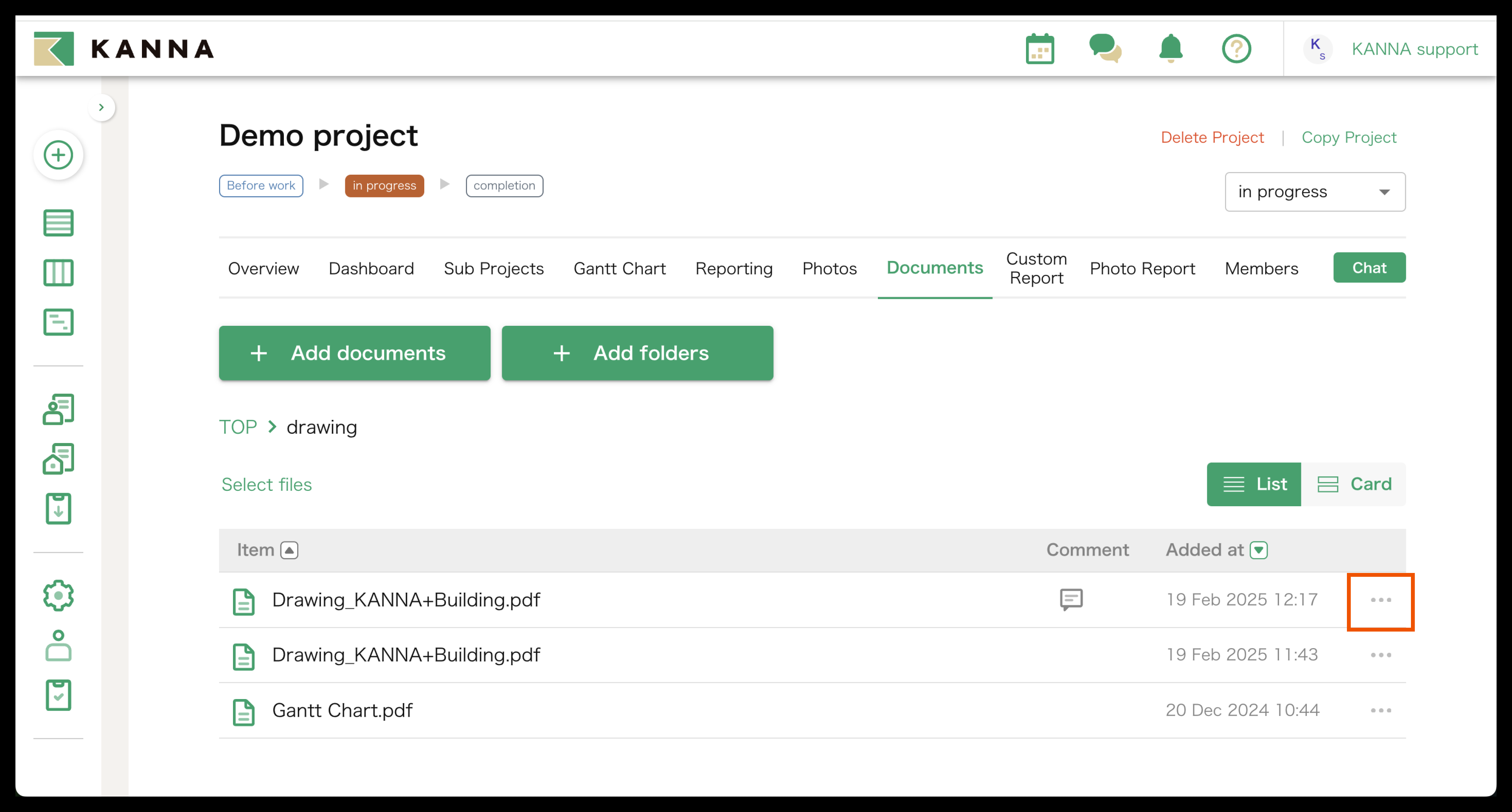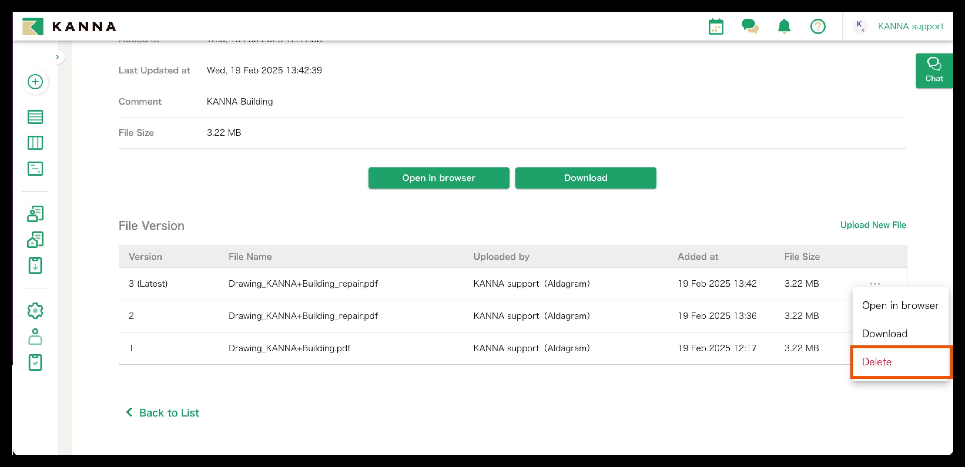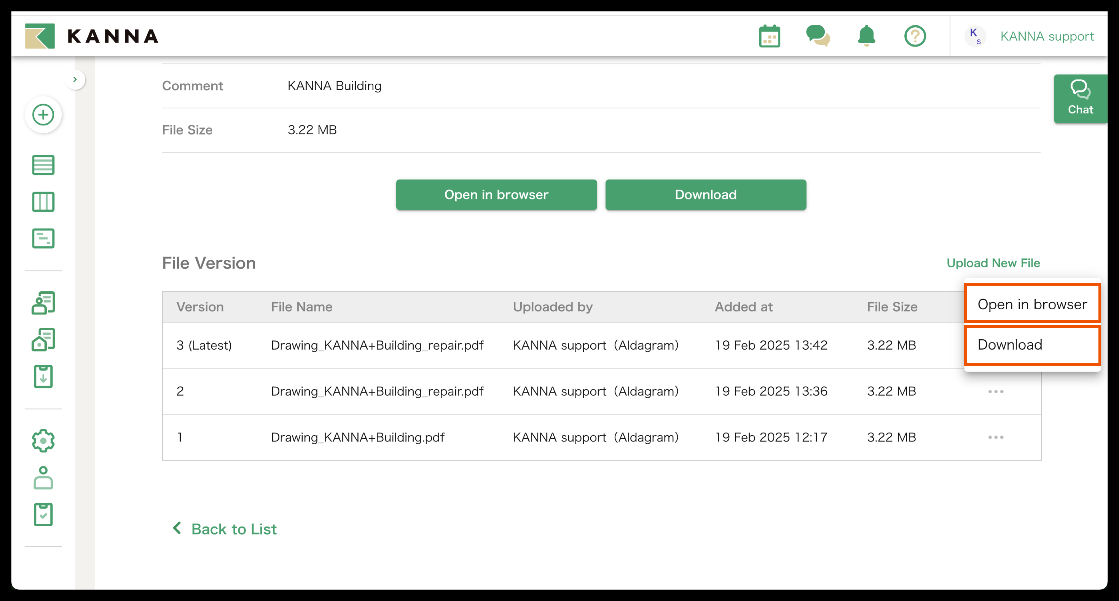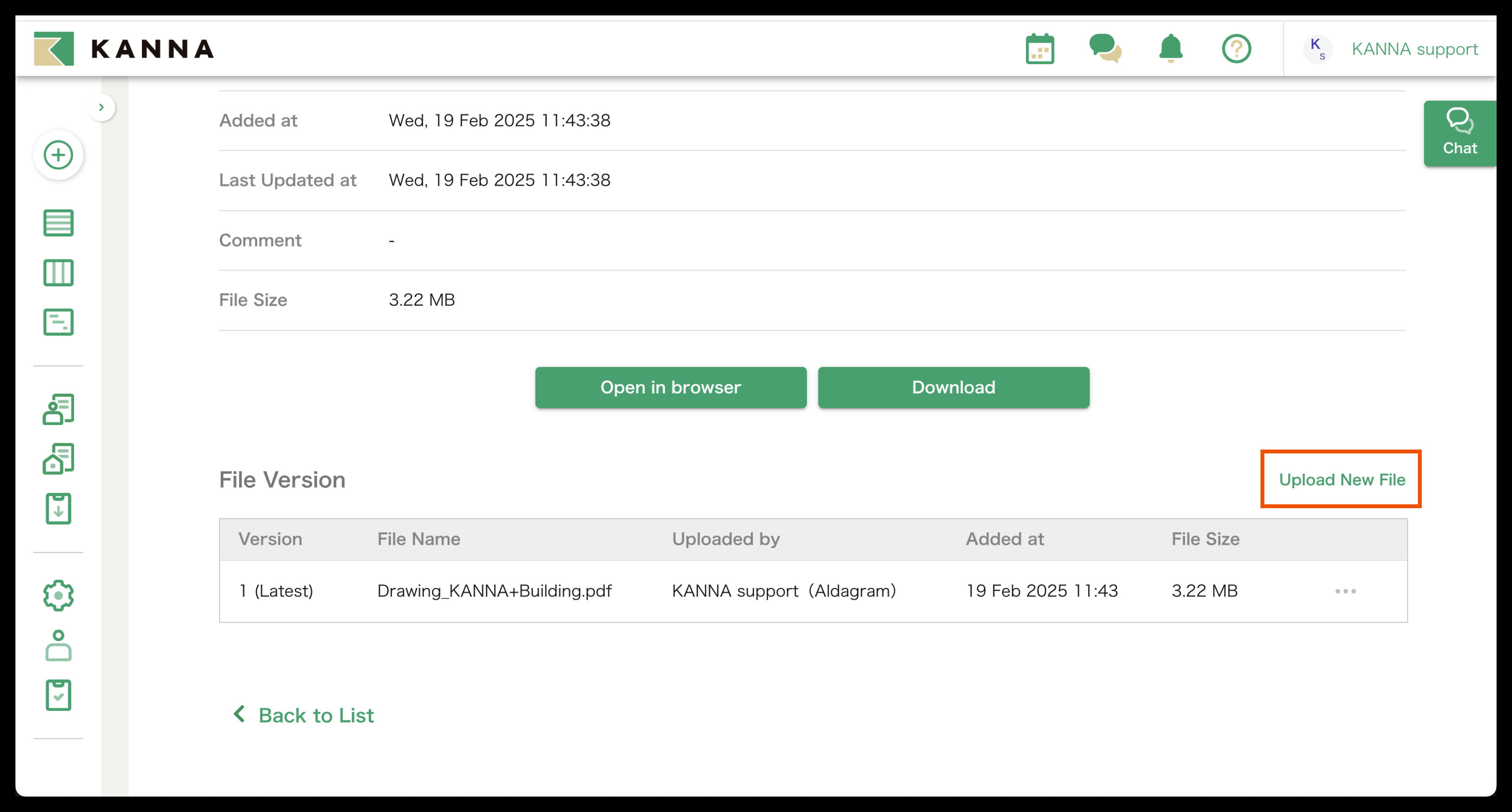 When you want to upload a revised or updated version of a document that has already been saved in KANNA, you can upload it as a different version of the file, instead of uploading it as a separate file.