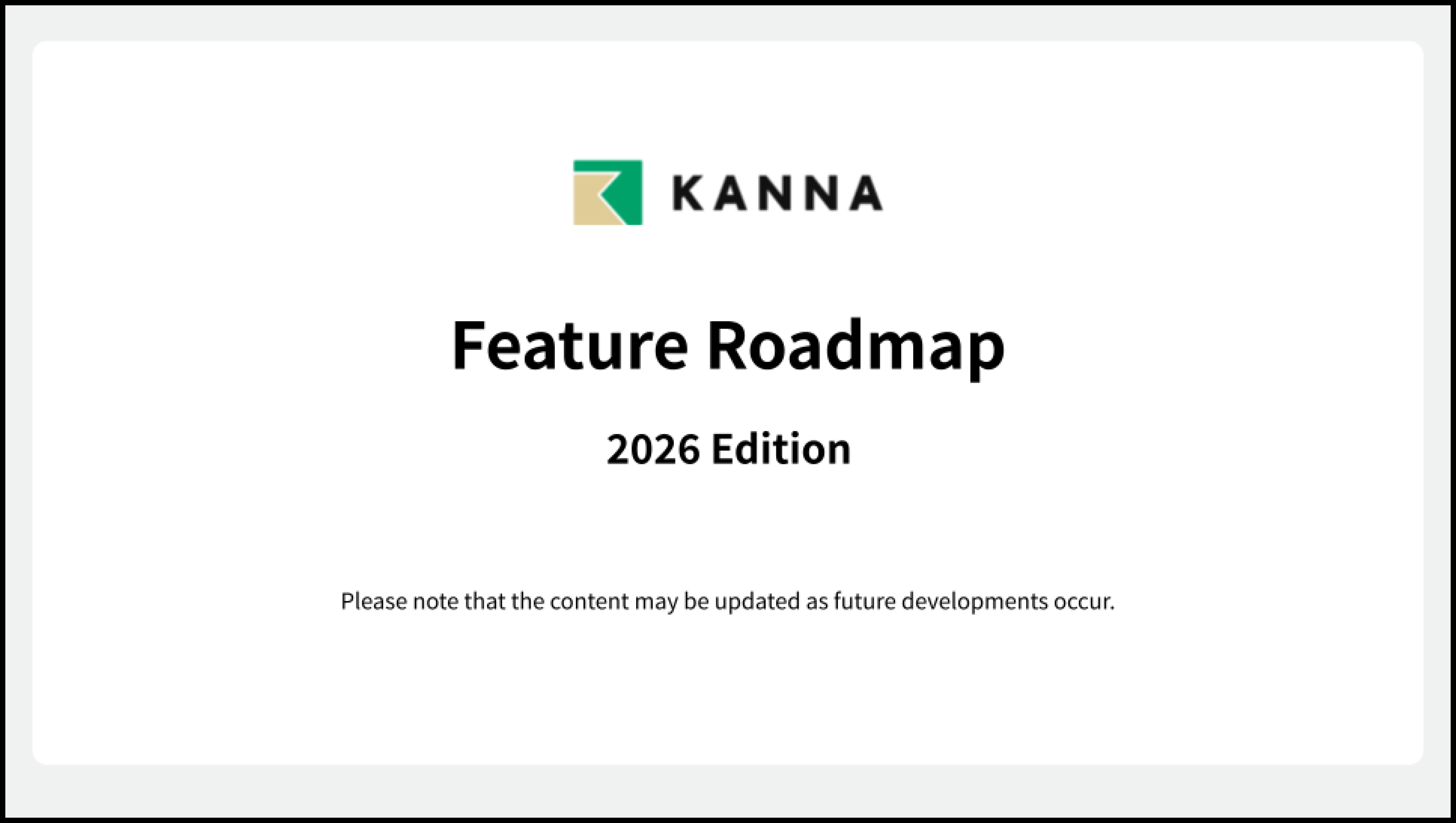 Note: The KANNA feature development roadmap is updated monthly.