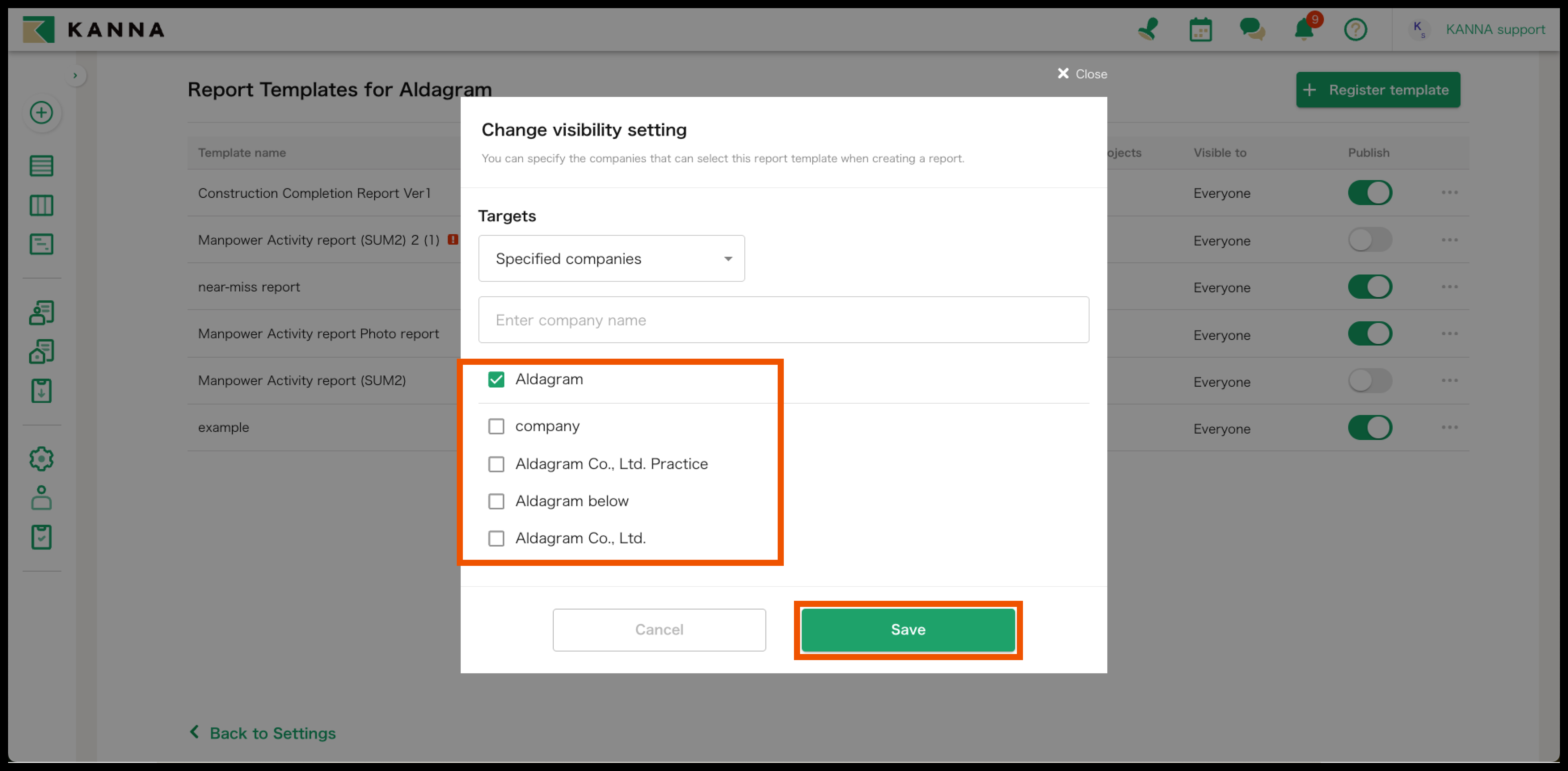 This report template will only be displayed for the specific company you have selected.