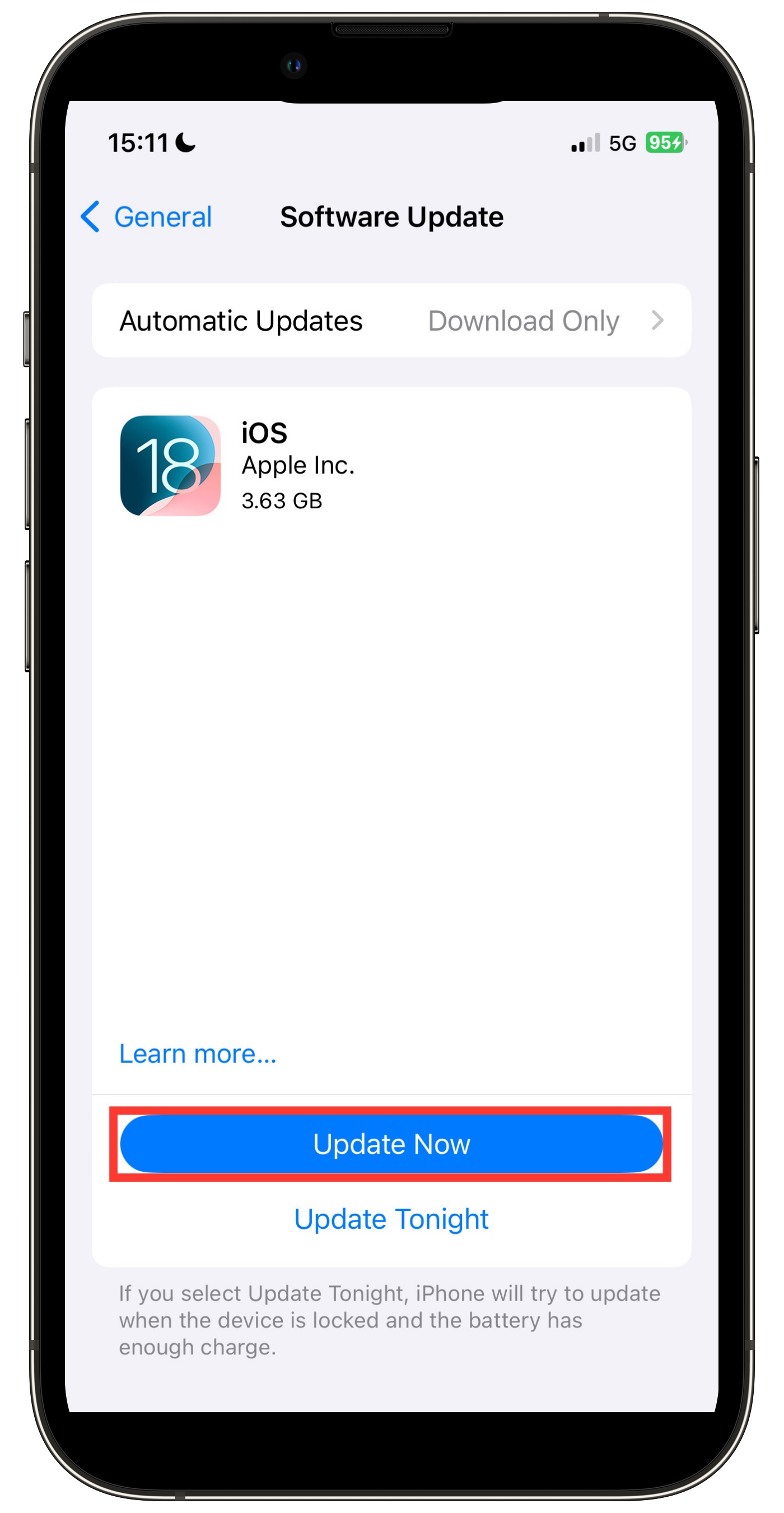 • If the download is already complete, Install Now will be displayed. Tap it to proceed.
