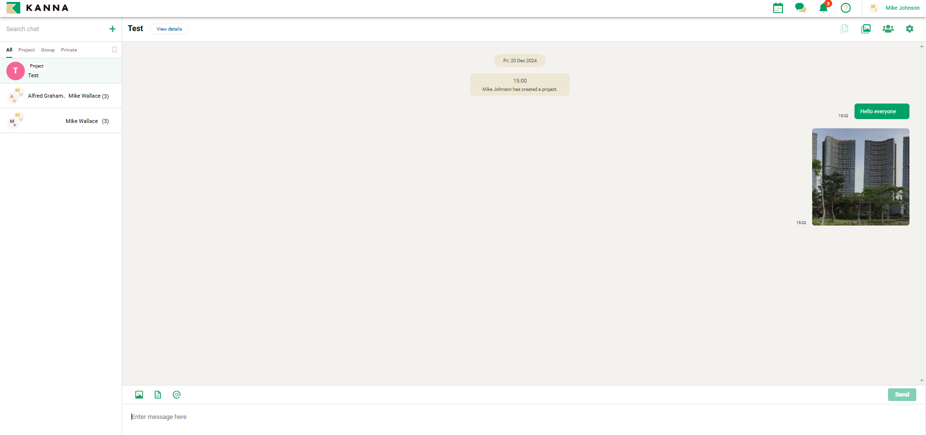 By pressing "Create Chat", a chat group for the corresponding project will be created.