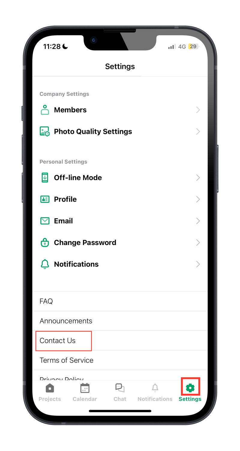 1. Tap [Contact Us] from Settings in the bottom right corner