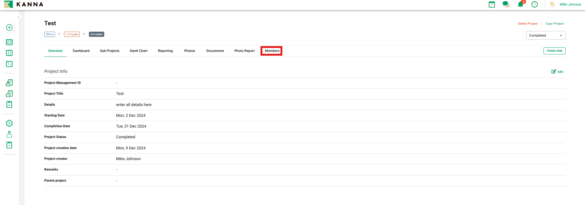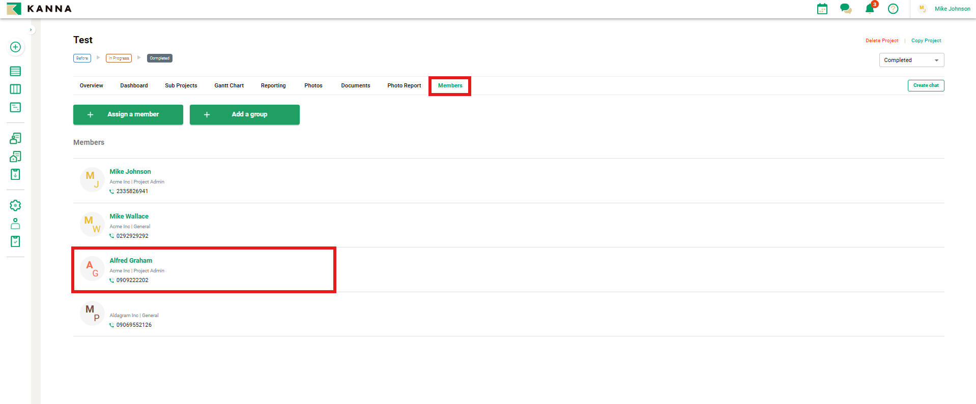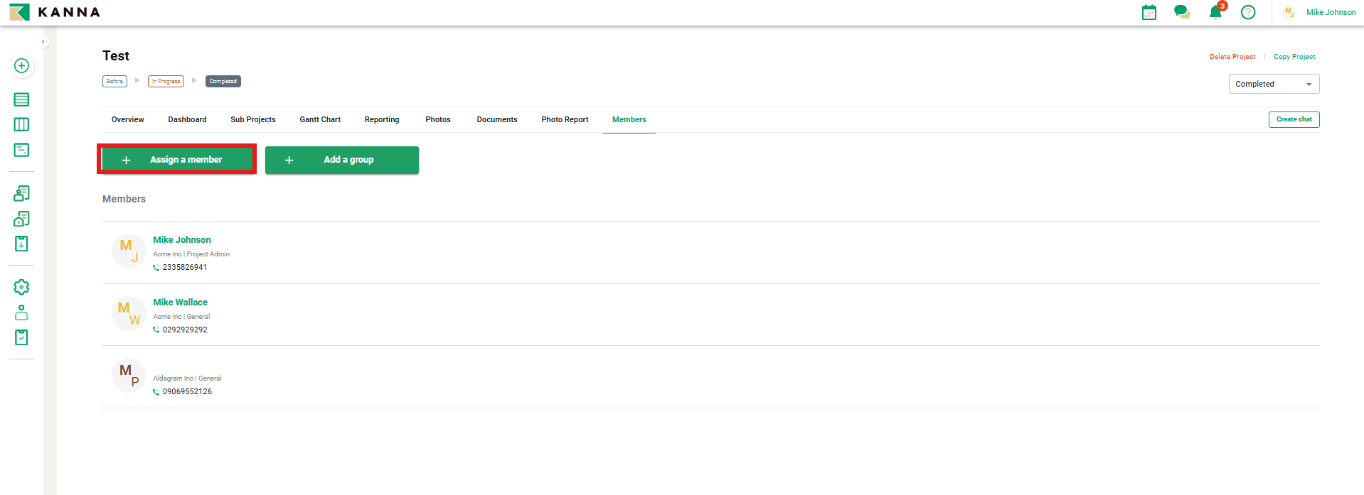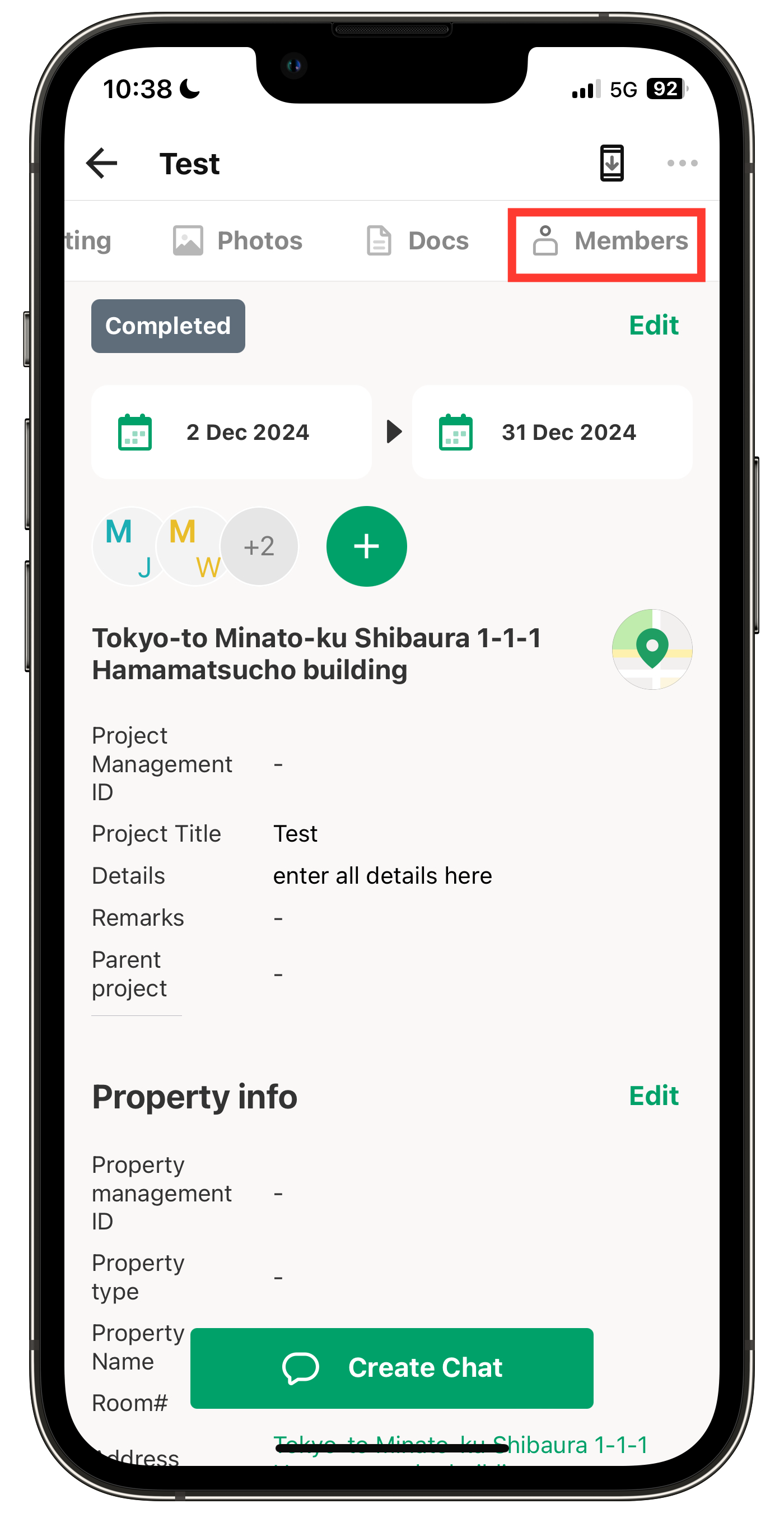 After creating a project, you can share project-related information (such as project details, photos, and documents) by assigning members to the project.