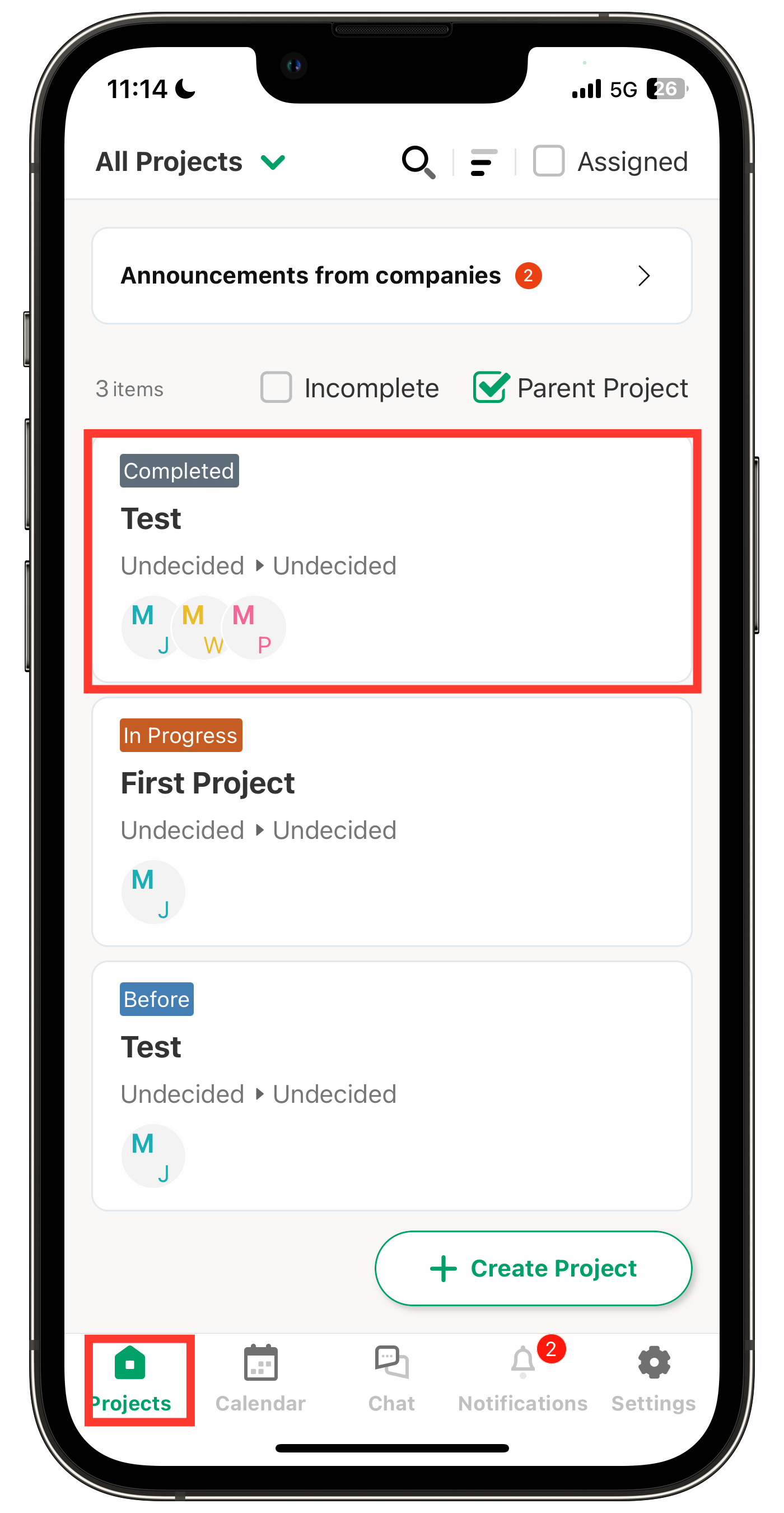1. Tap the project where you want to add members from the Projects menu.