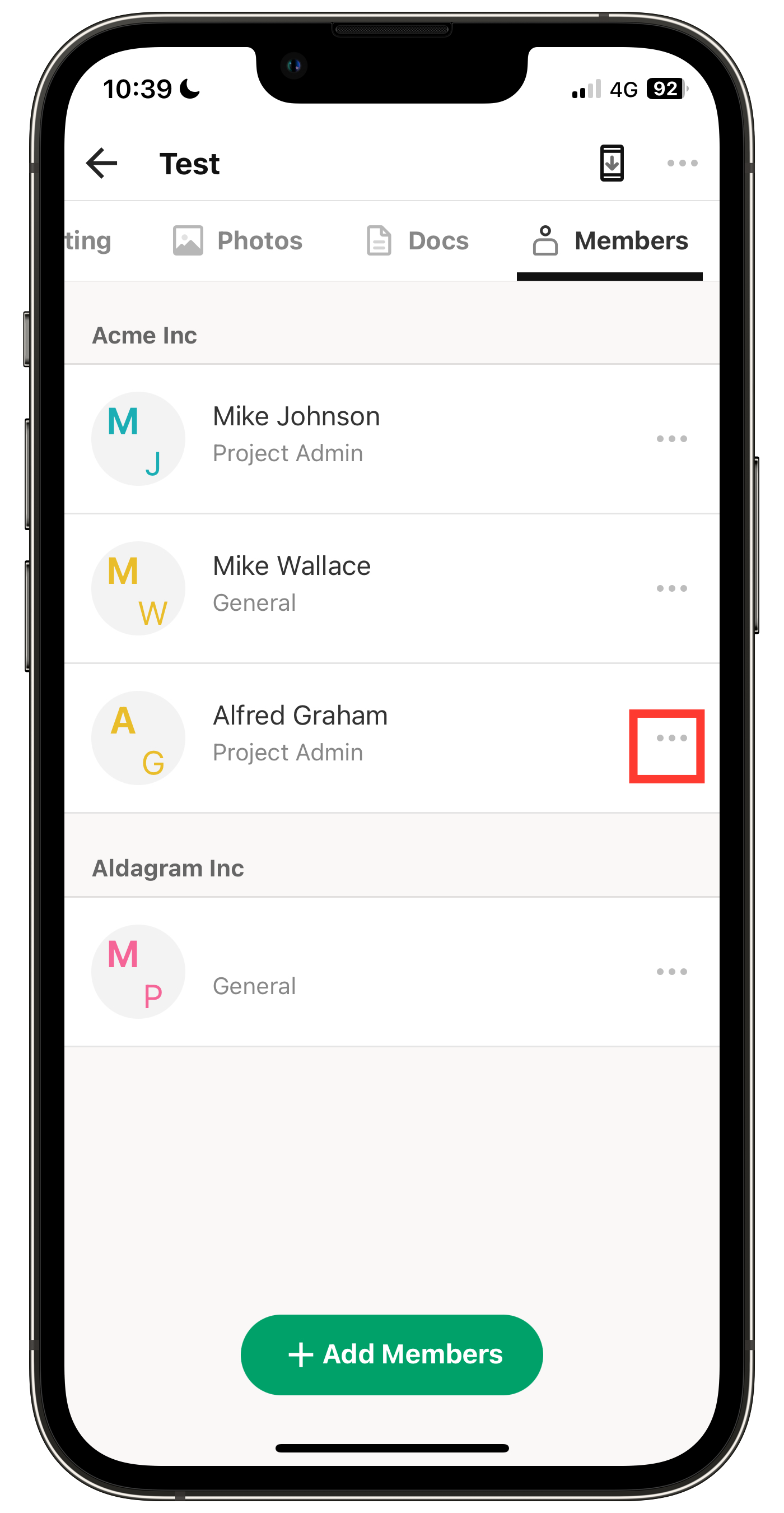 3. Tap + Add Members at the bottom.