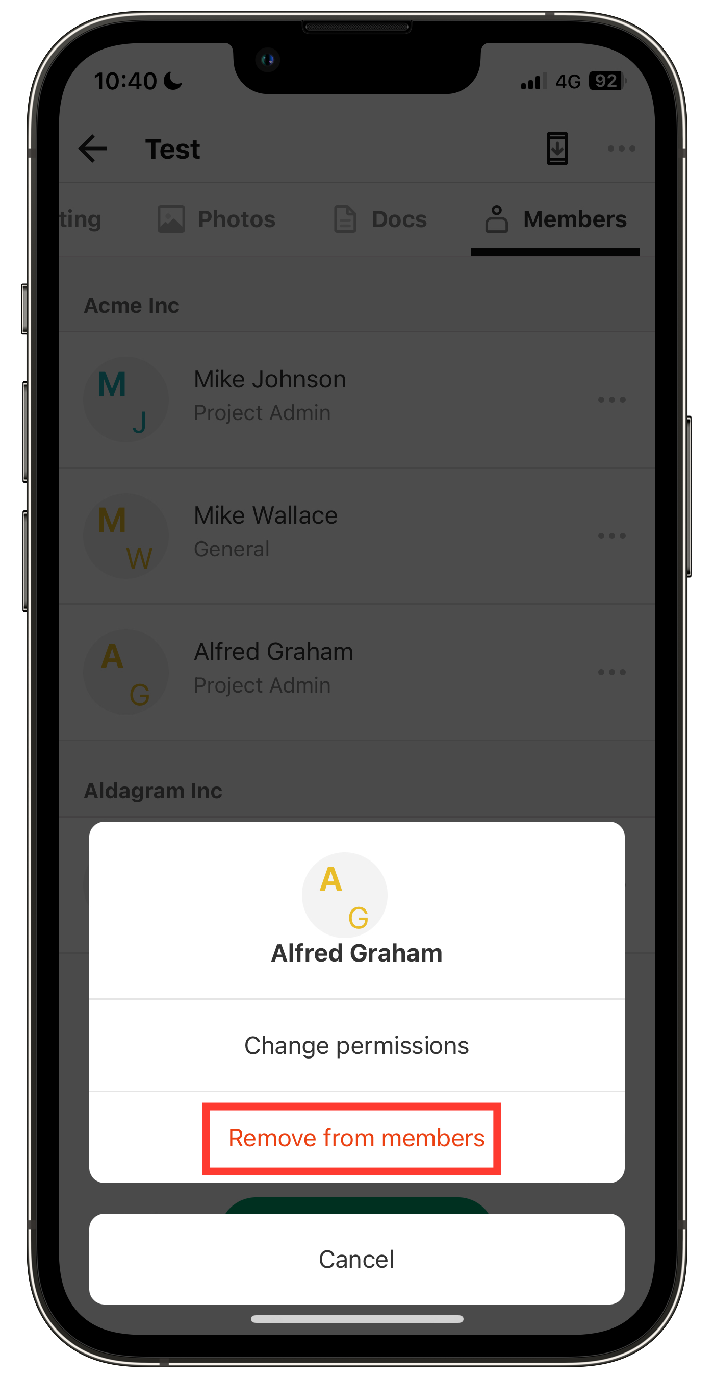3. Tap Remove from Members.