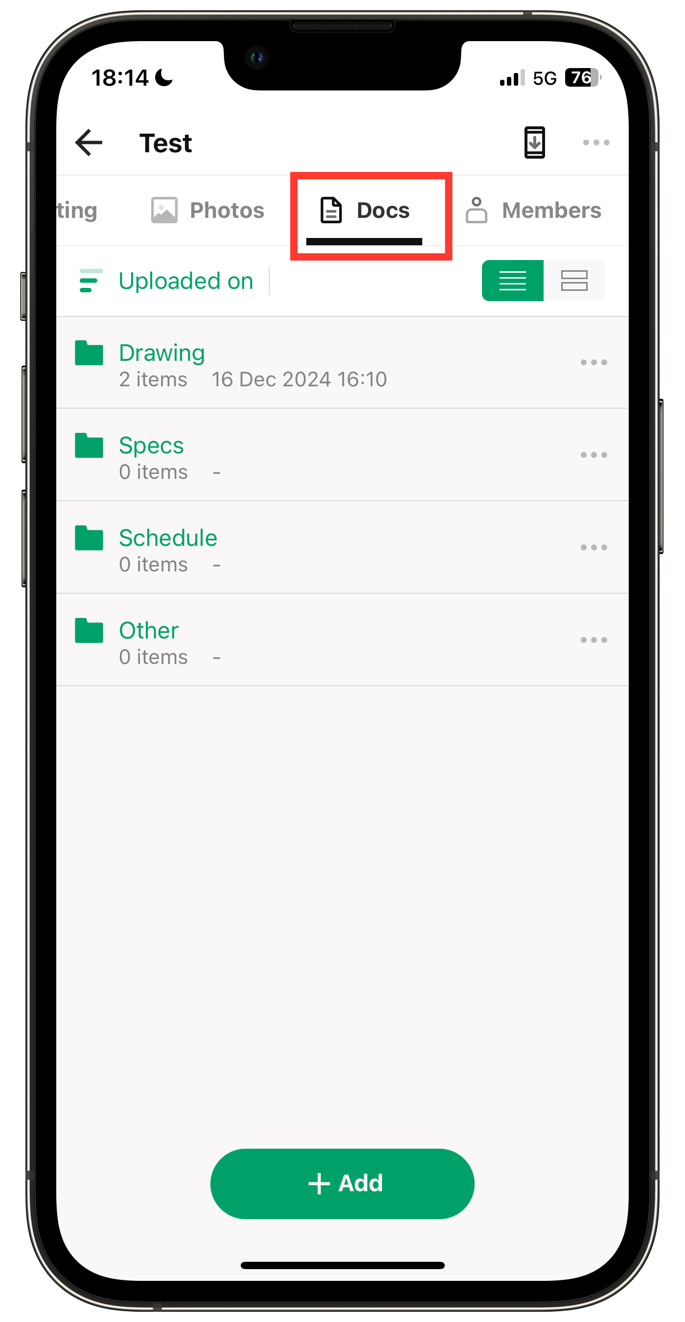 2. Tap "+ Add" and select Add Folders.