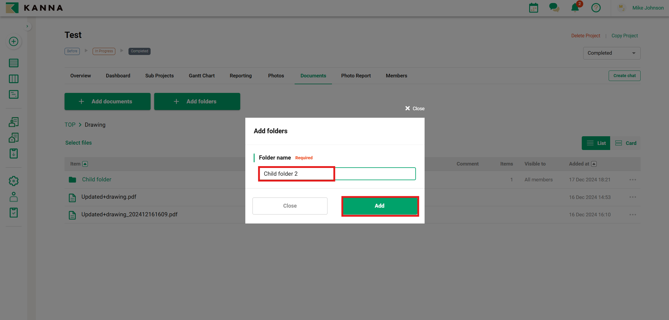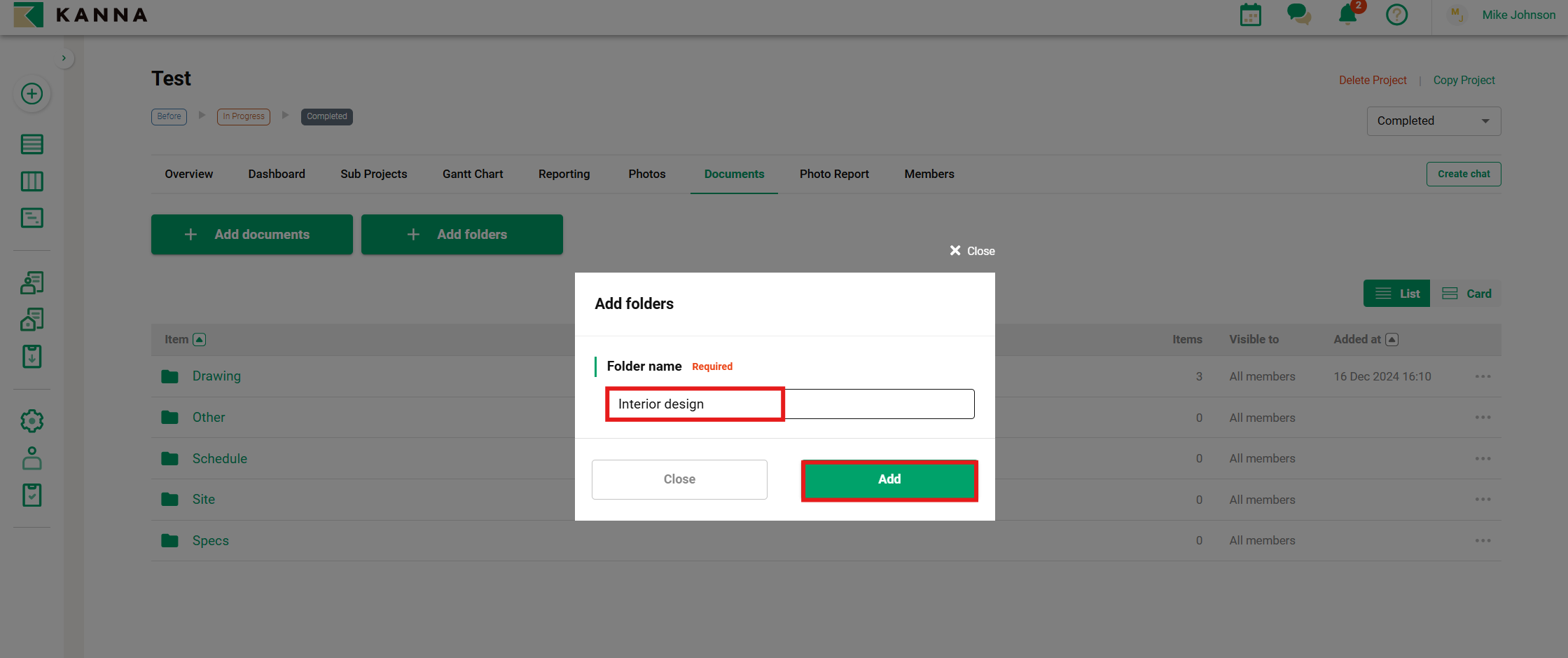 4. Enter the folder name and click Add.
