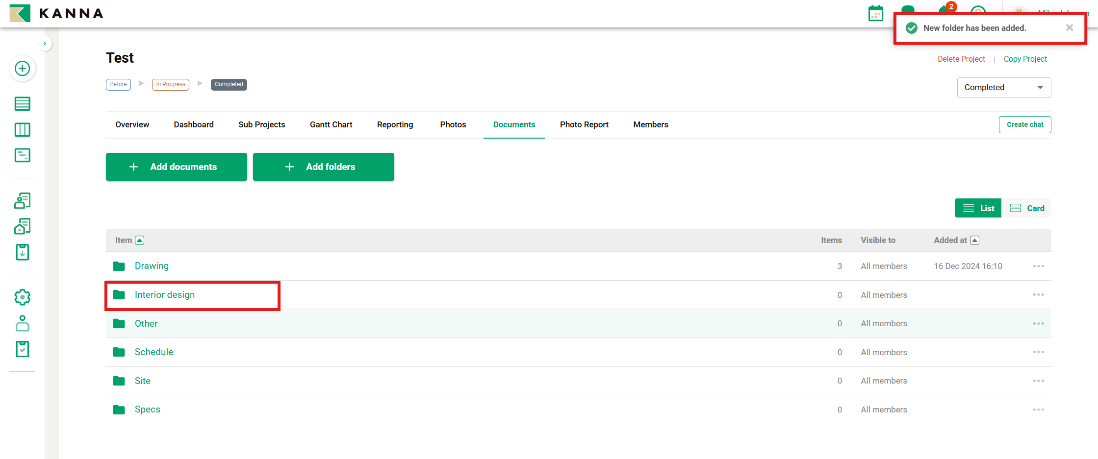 6. Folder addition complete.