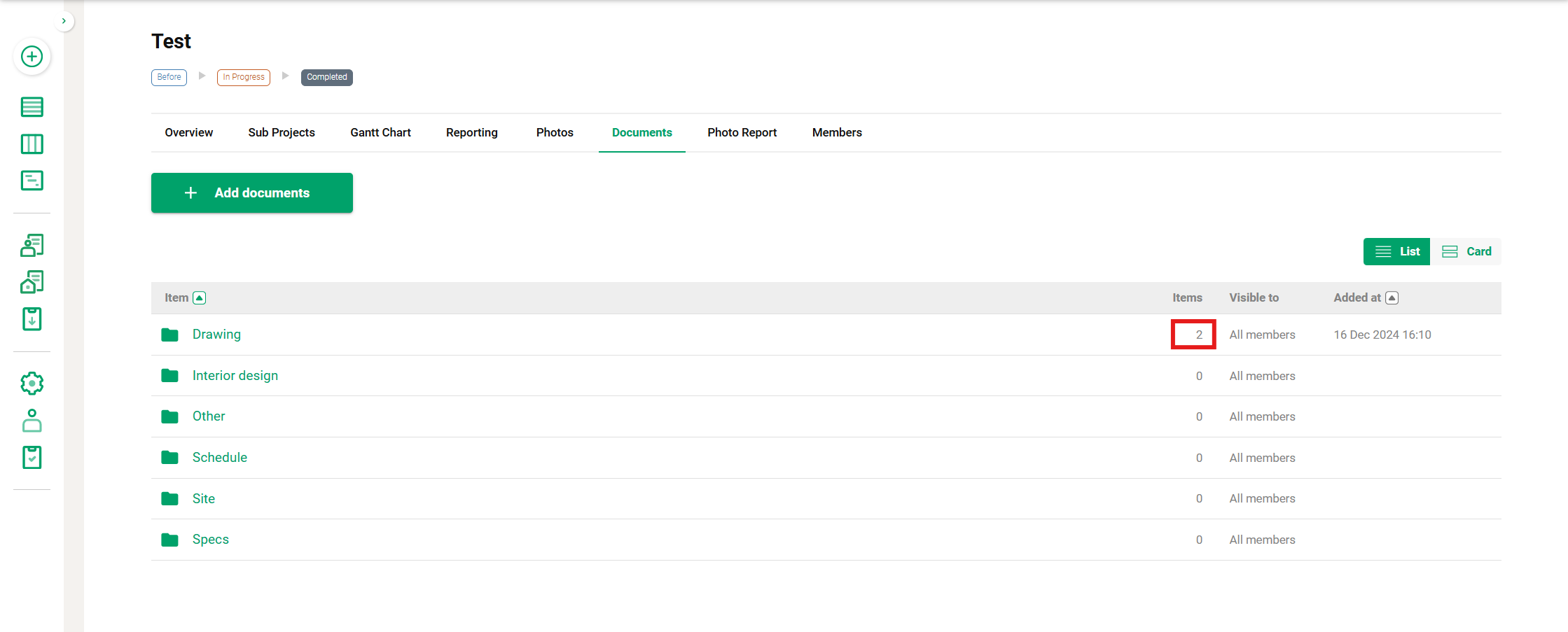Note: For members from external companies, the number of files in subfolders will display as 0 until they open the parent folder containing the files.