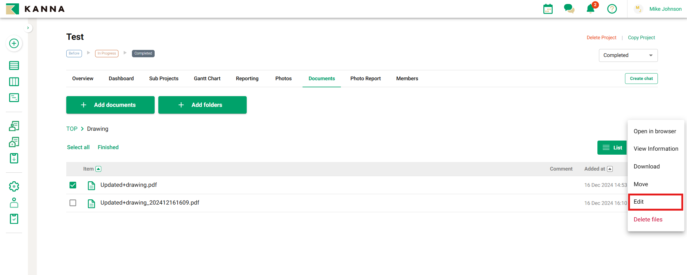 Rename files, Add/Delete comments: Available only for the person who uploaded the file