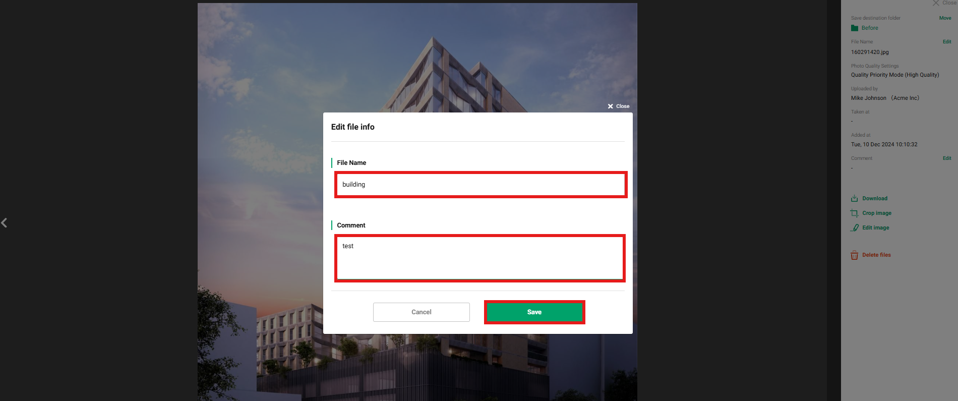 Ketuk "Edit" di sebelah kanan, masukkan nama file dan komentar, lalu ketuk "Simpan."